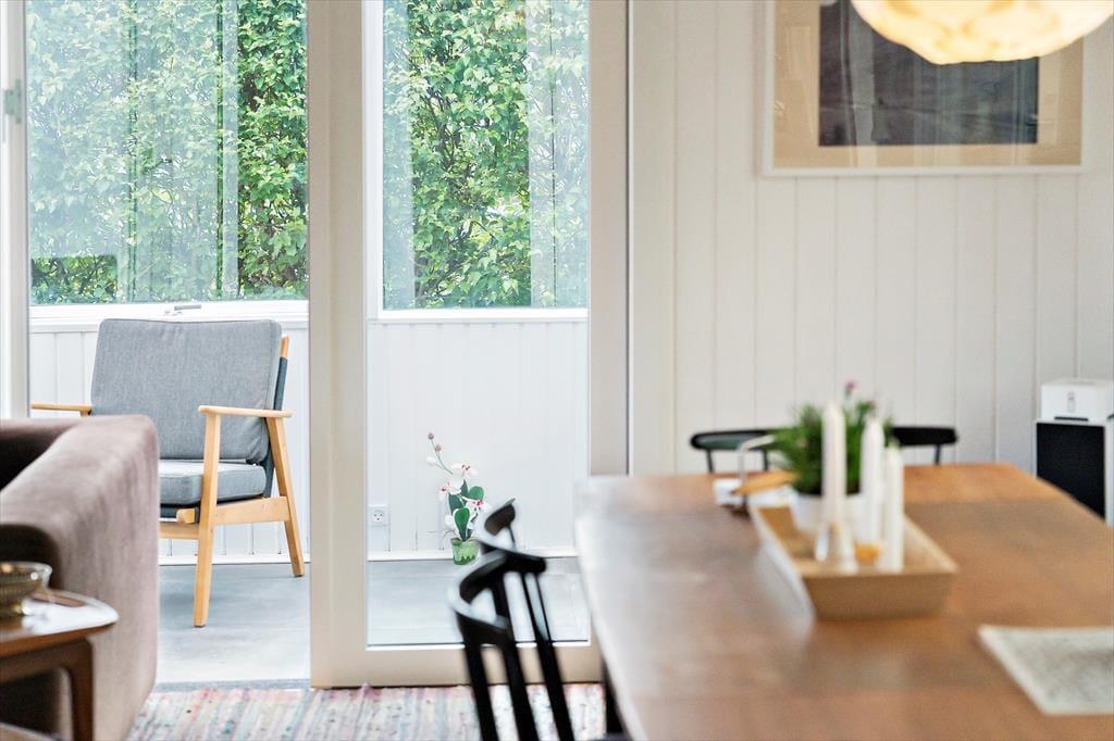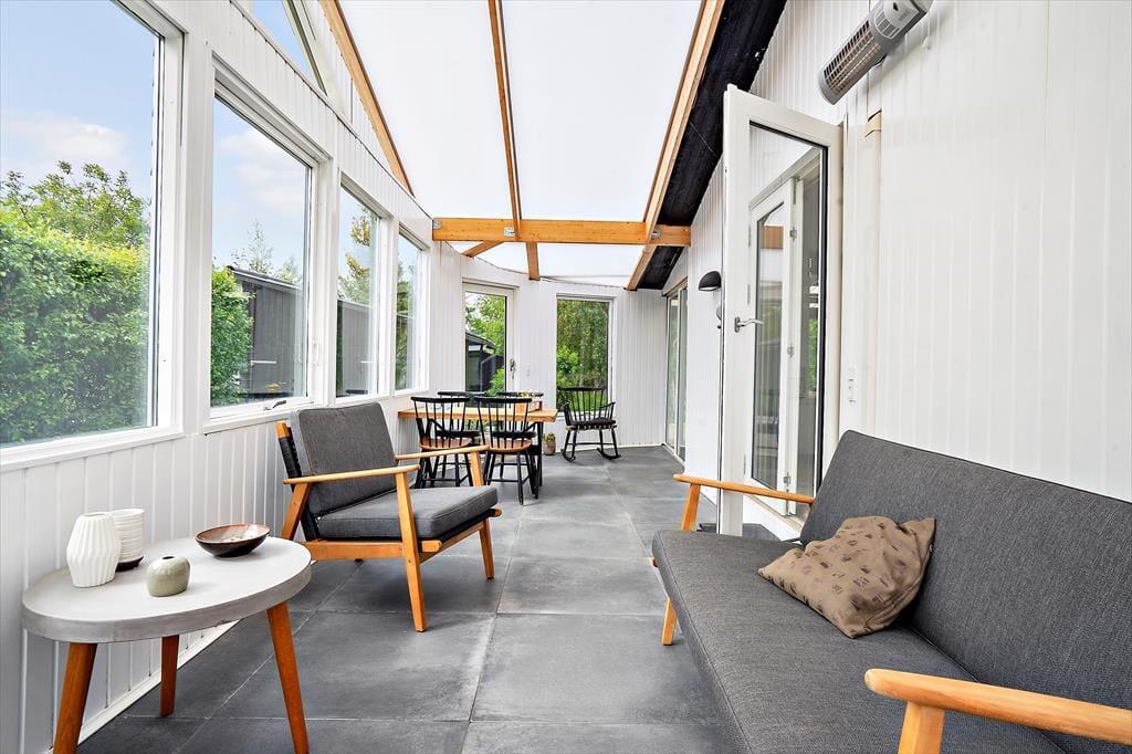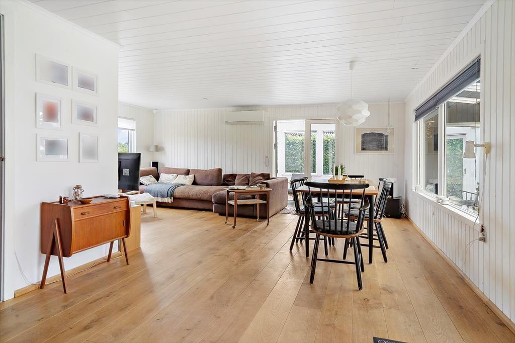 Sommerhuset indeholder en lys og indbydende stue i åben forbindelse til køkkenet. I stuen kan du slappe af foran brændeovnen og nyde det skønne lysindfald fra haven eller hvad med, at samle familien til et brætspil eller et godt måltid. Fra stuen er der direkte udgang til den hyggelige udestue, som er med til at forlænge sommermånederne til langt ind i efteråret. Ydermere rummer sommerhuset to gode værelser og et fint badeværelse.