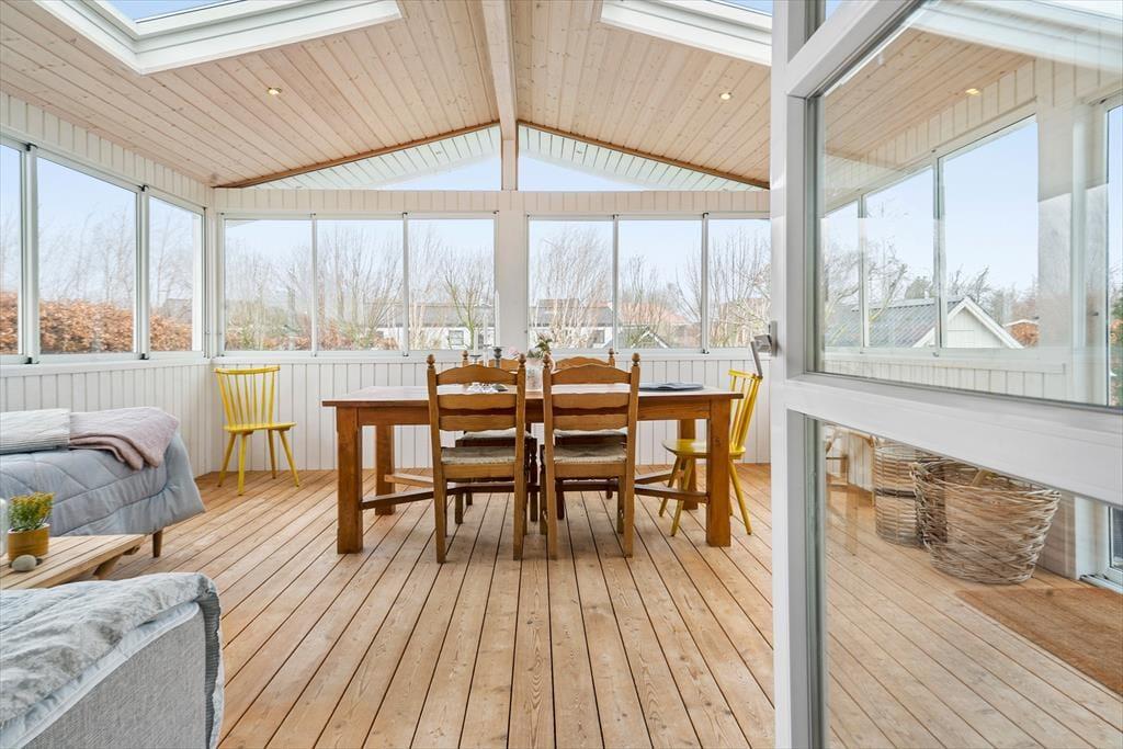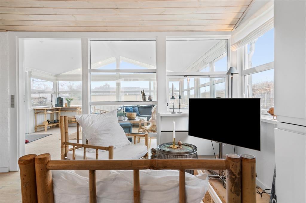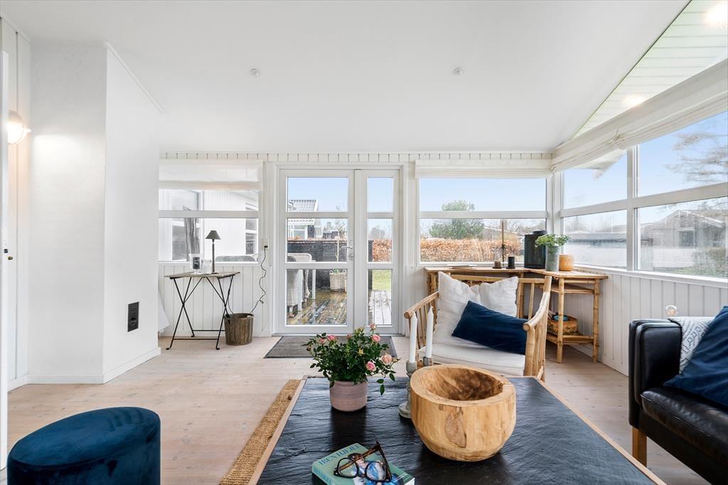 Sommerhuset indeholder en lys og indbydende stue i åben forbindelse til køkkenet. I stuen kan du slappe af foran brændeovnen og nyde det skønne lysindfald fra haven eller hvad med, at samle familien til et brætspil eller et godt måltid. Fra stuen er der direkte udgang til den hyggelige udestue, som er med til at forlænge sommermånederne til langt ind i efteråret. Ydermere rummer sommerhuset to gode værelser og et fint badeværelse.
