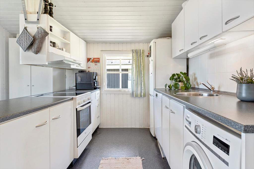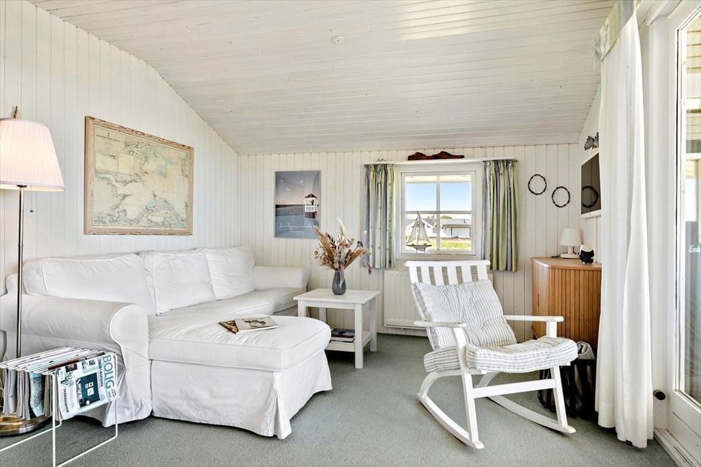 Hvert skridt ind i ferieboligen føles som om, du kommer endnu tættere på roen og afslapningen. I dette charmerende sommerhus med sin hyggelige indretning føler du dig velkommen fra allerførste øjeblik. Her omfavnes man af naturen, stranden og havet, takket være den fantastiske panoramaudsigt. Det er netop denne helt unikke udsigt, der gør dette sommerhus til noget helt særligt. Sommerhusets maritime placering skinner igennem i hvert rum, med indretningen prydet af fine havblå detaljer.