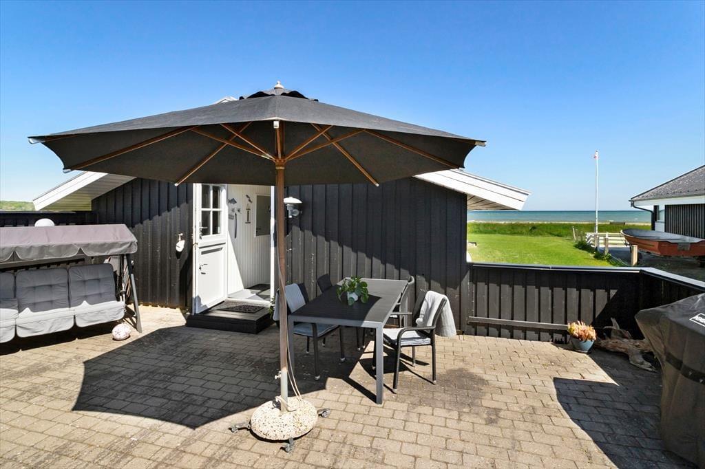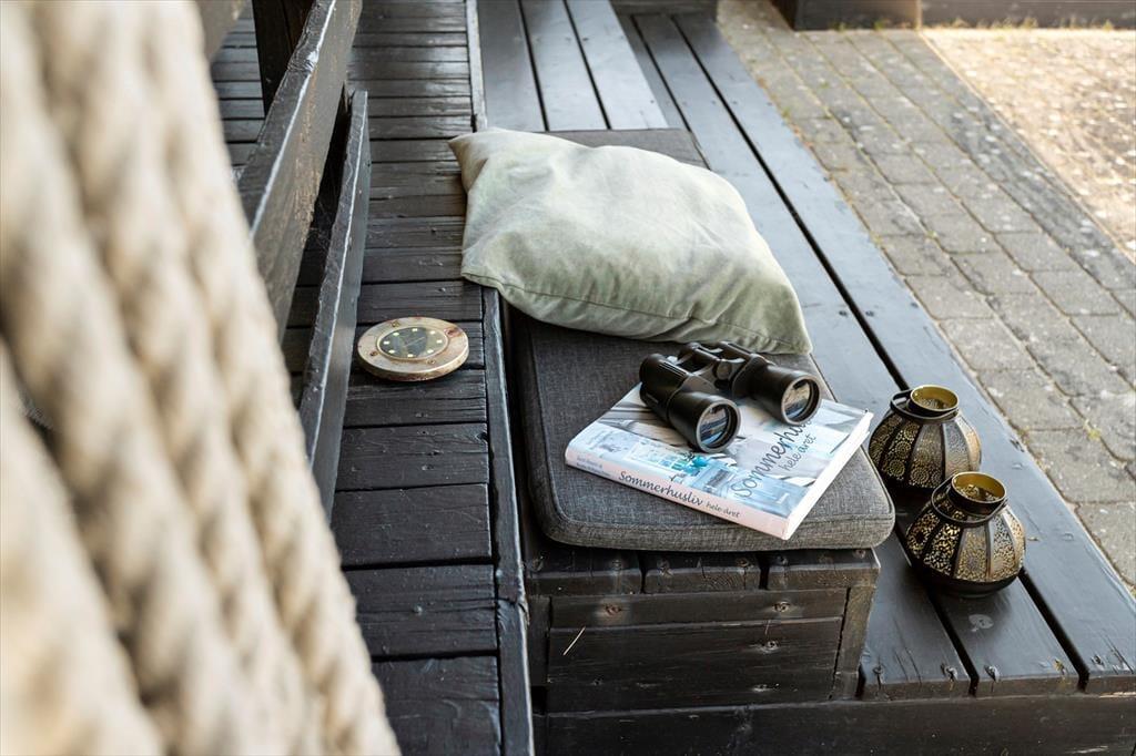 Hvis du kan løsrive dig fra udsigten, kan vi på det varmeste anbefale at benytte sommerhusets gode gasgrill og tilberede maden på en af de dejlige terrasser. Eller læn dig tilbage i de indbyggede havemøbler med en kølig drink og nyd den danske sommer.