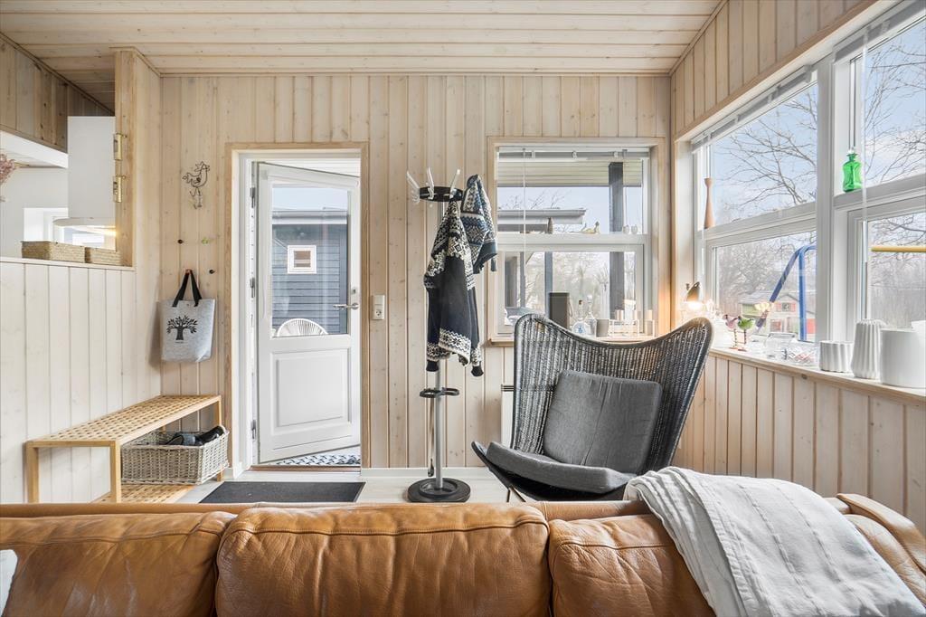 Når du træder indenfor i sommerhuset, kan du med det samme mærke, at her er der skruet op for hyggen og der er plads til, at I kan nyde ferien med hinanden. Vinduerne i huset giver et dejligt lysindfald, og haven kommer på den måde helt indenfor. De gennemgående lyse trævægge skaber en dejlig sommerhusatmosfære, så du kan godt glæde dig til ferien her!