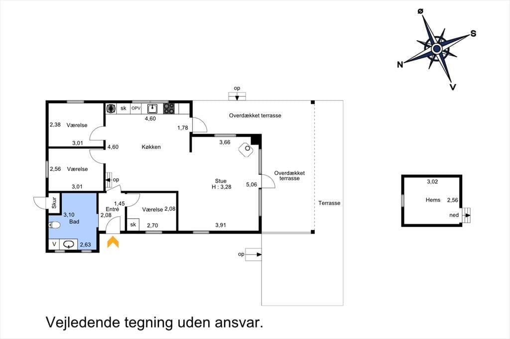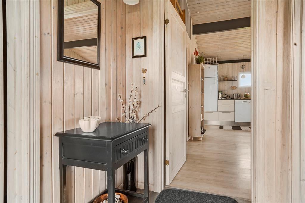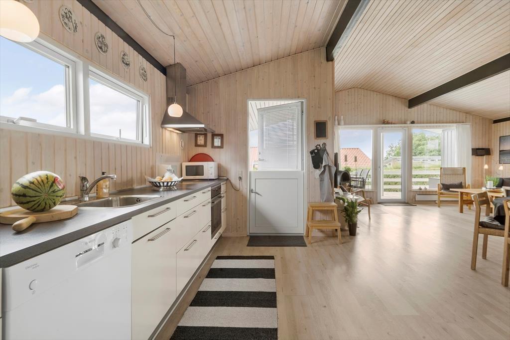 Træd indenfor i dette lyse og hyggelige feriehus, hvor en dejlig brændeovn skaber en varm og indbydende atmosfære. Når du træder ind i entréen, åbner det centrale køkken-alrum sig op og udgør hjertet af boligen. Her vil du straks blive fortryllet af rummeligheden og det smukke lys, der strømmer ind gennem de store vinduespartier. Mens du tilbereder måltider, kan du nyde udsigten over hustagene og havet direkte fra køkkenet. Fra alrummet er der adgang til to af sommerhusets komfortable soveværelser og en hyggelig hems, perfekt til afslapning. I værelset med enkeltseng er der plads til en gulvlift, og badeværelset er stort nok til en kørestol og brugen af en vaskestol. Med en rampe op til verandaen og adgang til huset i kørestol, er dette sommerhus både indbydende og tilgængeligt. Nyd roen og det dejlige havkig fra dette rummelige feriehus, der har plads til hele familien.