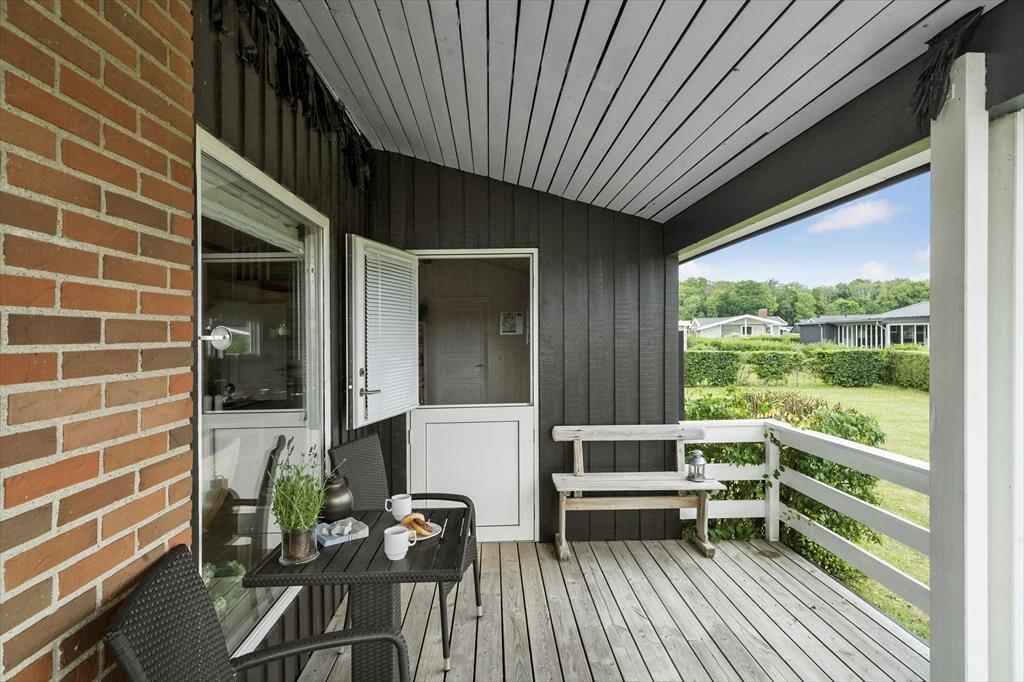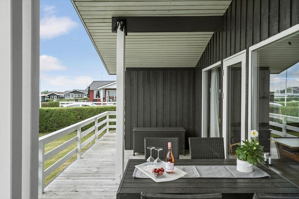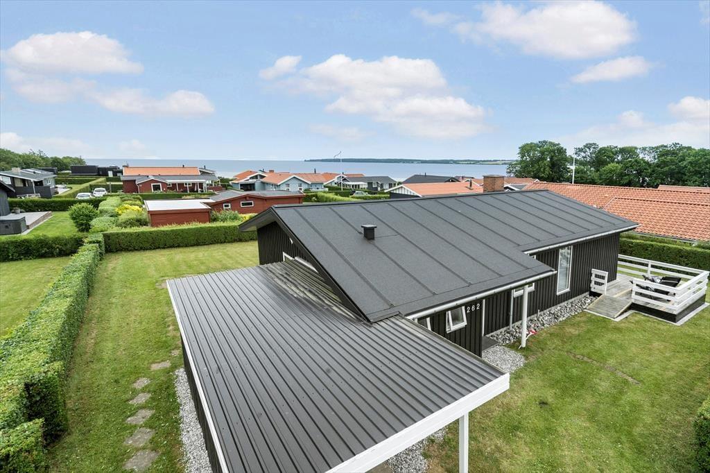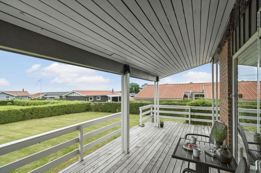 Udendørsområdet byder på en skøn veranda og terrasse, hvorfra du kan nyde den fantastiske udsigt over havet. Den store have med en rummelig græsplæne er ideel til leg, spil og solbadning. Du kan slappe af i de komfortable solstole på terrassen og lade hverdagens stress forsvinde. Den 23 m² overdækkede terrasse forlænger dine sommeraftener markant, fri for dug og friske vinde. Terrassen er hævet, hvilket giver dig mulighed for at nyde udsigten ned til vandet. Ved ankomst kan bilen parkeres i den tilhørende carport, der ligger lige op ad huset, så du kan komme tørskoet indenfor. Her er der plads til at nyde livet og den friske luft i fulde drag.