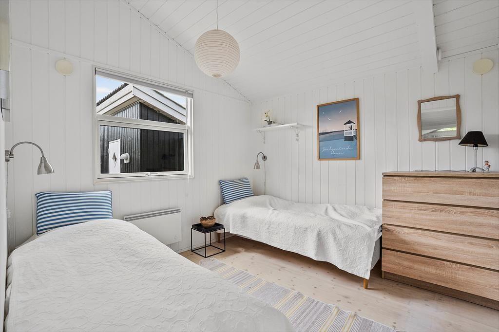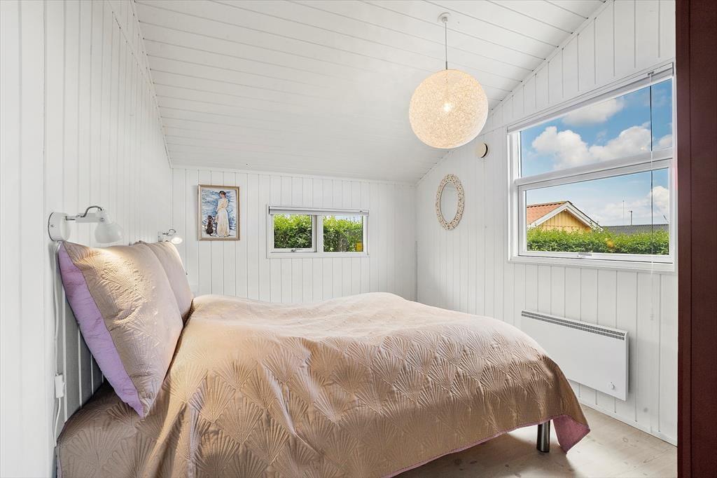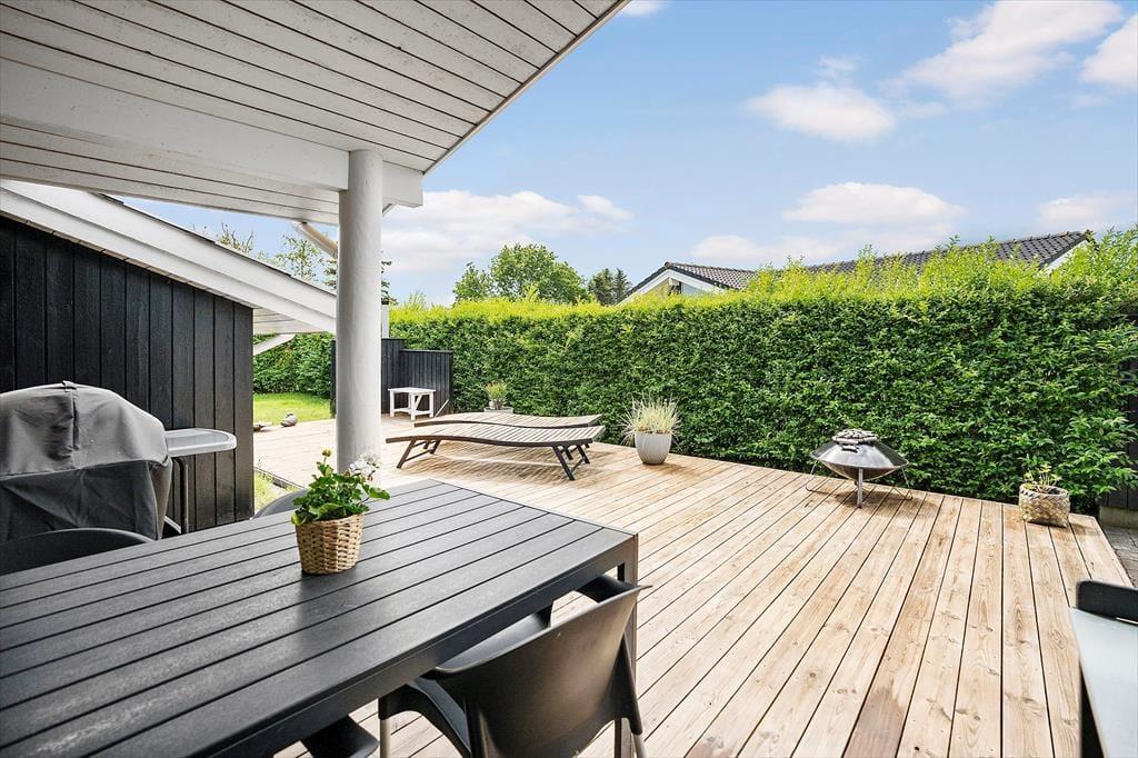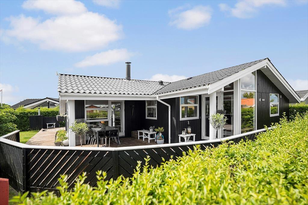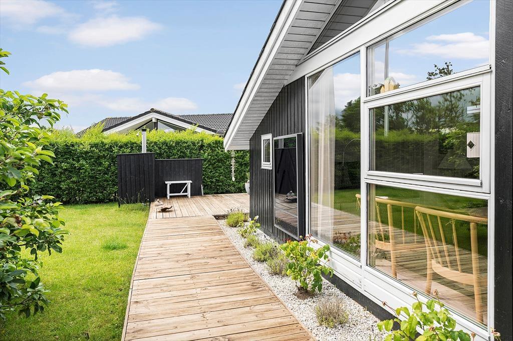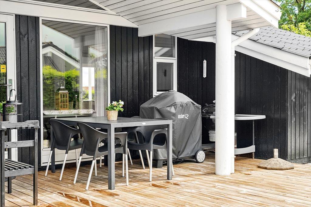 Sommerhuset ligger i et skønt sommerhusområde kun 100 m fra en god sandstrand. På husets to terrasser finder I gode havemøbler, så I kan sidde behageligt og nyde udelivet. Hvis I vil solbade, er der flere liggestole, som I kan slappe af i med en god bog. Derudover er der mulighed for at tilberede feriens måltider på husets gasgrill. I den dejligt lukkede have er der plads til fri leg og afslapning, og der er mulighed for at tage et brusebad efter en lang dag på stranden.