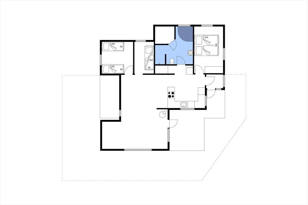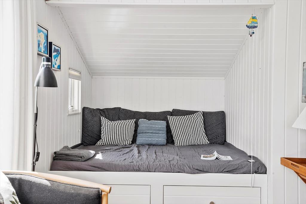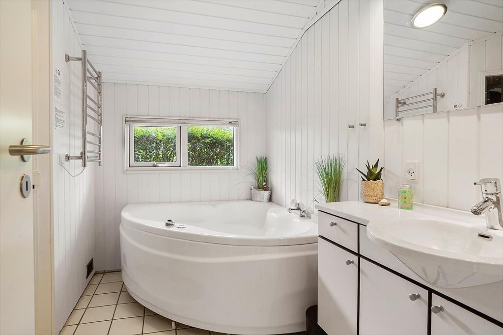 Vi byder velkommen til dette sommerhus i skøn sommerhusstil med havkig. Her kan familien på 6 personer få en dejlig ferie i gode rammer. Det moderne køkken har en god størrelse og indeholder alt, I skal bruge under ferien, inkl. opvaskemaskine. I køkkenet har I god plads til at tilberede feriens måltider. Køkkenet har direkte forbindelse til den store og åbne stue, hvor der både er en spiseafdeling og et hyggeligt sofahjørne med alkove. Hvis I ønsker at skrue lidt ekstra op for hyggen, kan I tænde op i brændeovnen. Fra stuen har I udgang til den delvist overdækkede terrasse, hvor I kan tilbringe mange hyggelige timer med brætspil eller gode samtaler. Husets sovepladser fordeler sig på 3 gode soveværelser: ét værelse med dobbeltseng, et værelse med to enkeltsenge og et værelse med køjeseng. Badeværelset er stort, flot og lækkert med både bruser, toilet, gulvvarme, vaskemaskine, spabad og adgang til sauna – her kan I få en dejlig wellness-oplevelse.