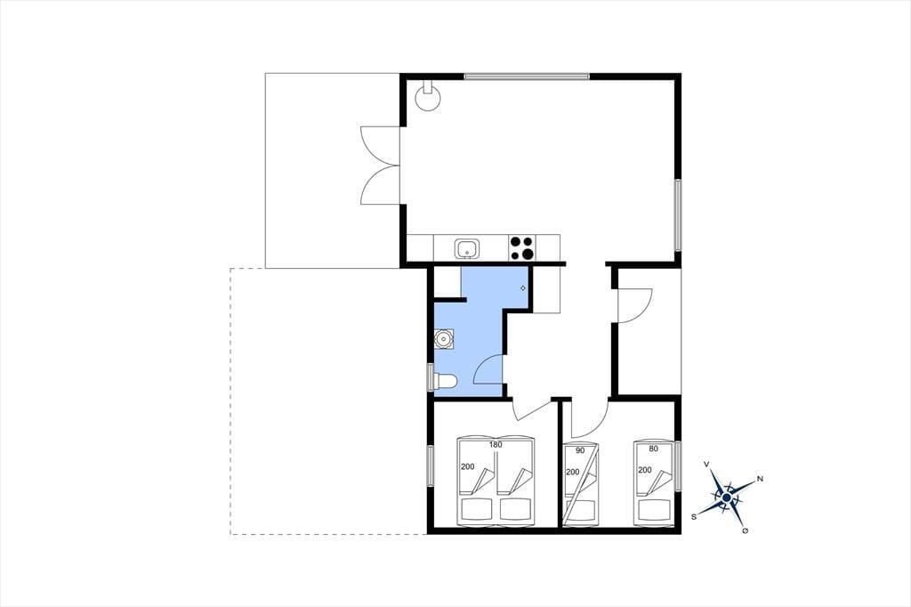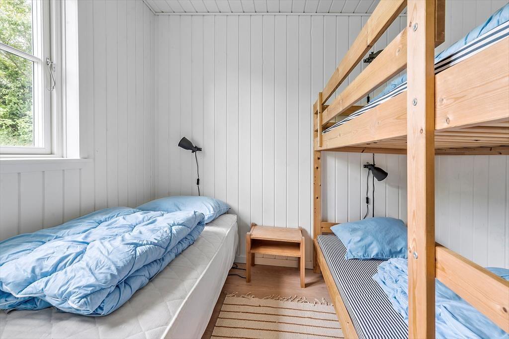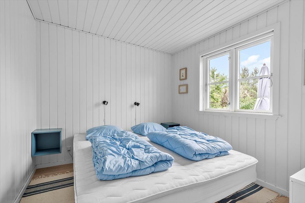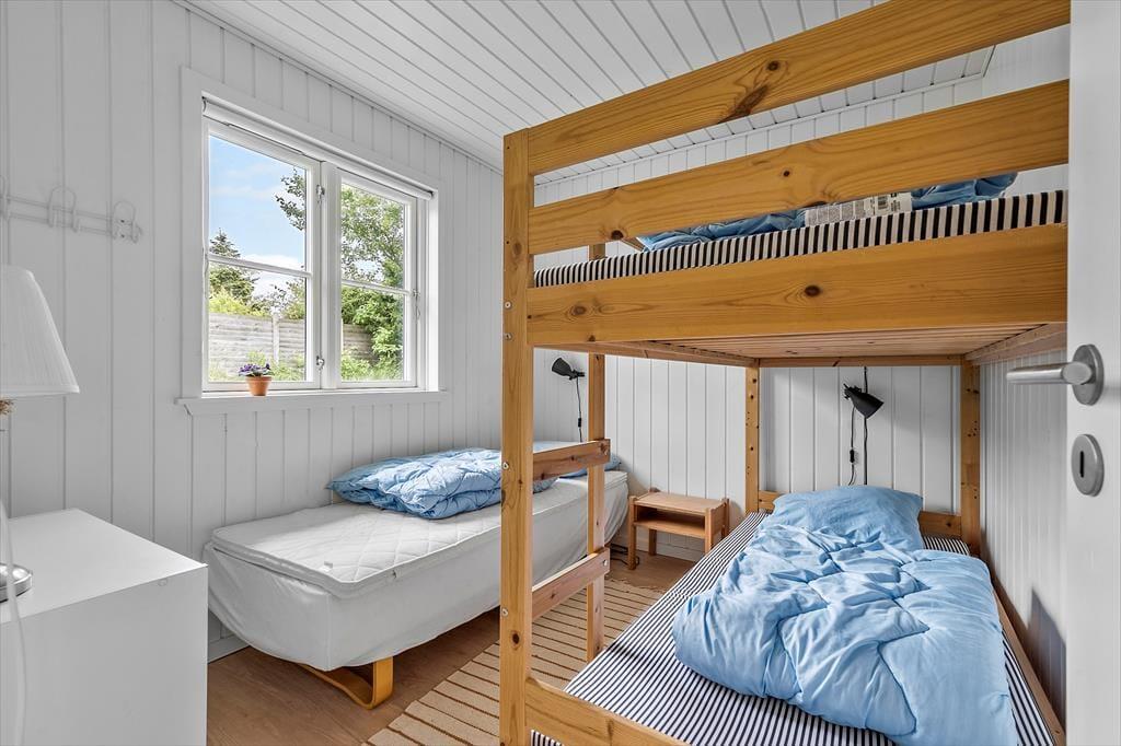 Køkkenet har alt hvad I har brug for under jeres ophold. Køkkenet har fin spiseplads med plads til alle og åben adgang til stuen. Husets sovepladser fordeler sig på 2 soverum; et soverum med dobbelt seng og et soverum med køjeseng samt enkelt seng. Badeværelse er med brus, wc og gulvvarme. Der er desuden mulighed for at få vasket badehåndklæderne i huset vaskemaskine efter en lang dag ved stranden.