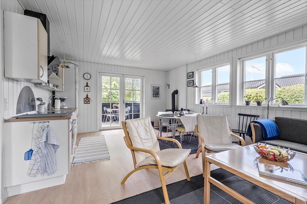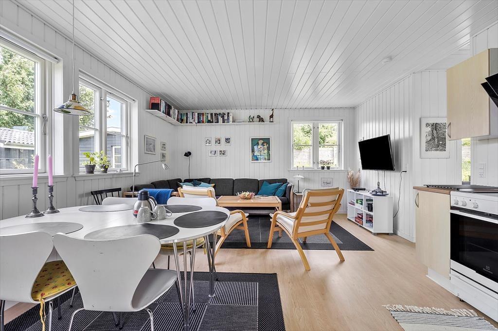 Stuen er med udgang direkte til dejlig overdækket træterrasse. I stuen vil I helt sikkert samles i sofagruppen til brætspil, hygge og kvalitetstid med hinanden. Der er gode siddepladser til jer alle og selvfølgelig TV-pakke med danske, tyske, svenske og norske kanaler.
