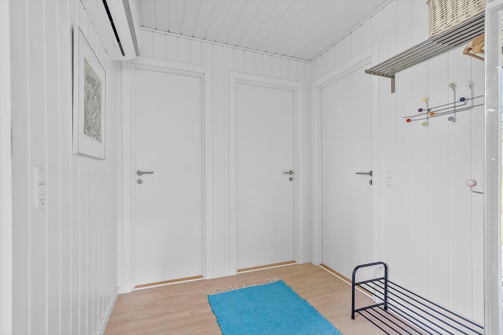 Med kun 300 meter til dejlig strand, finder man dette skønne sommerhus med plads til 4 voksne og 1 barn fordelt i 2 soverum.