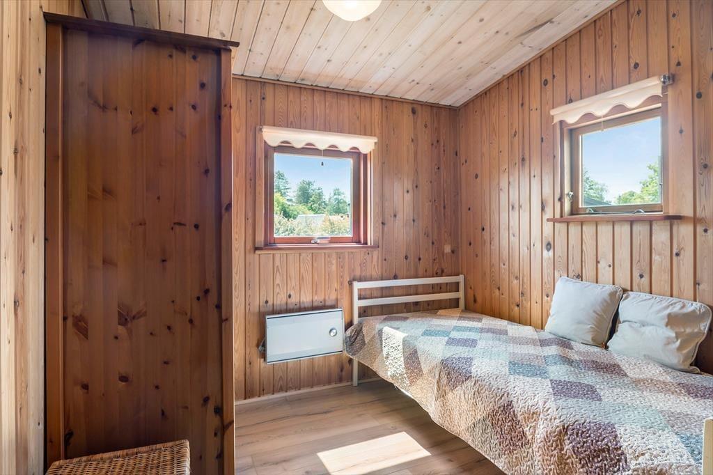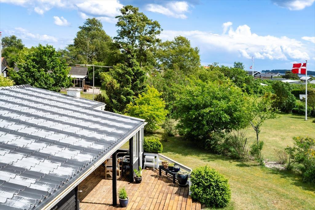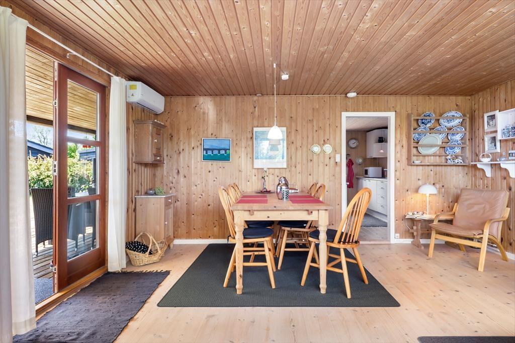 Sommerhuset rummer en stue, et køkken, tre soveværelser og et badeværelse. Fra stuen er der direkte udgang til en hyggelig, overdækket terrasse, som er med til at forlænge sommermånederne langt ind i efteråret.