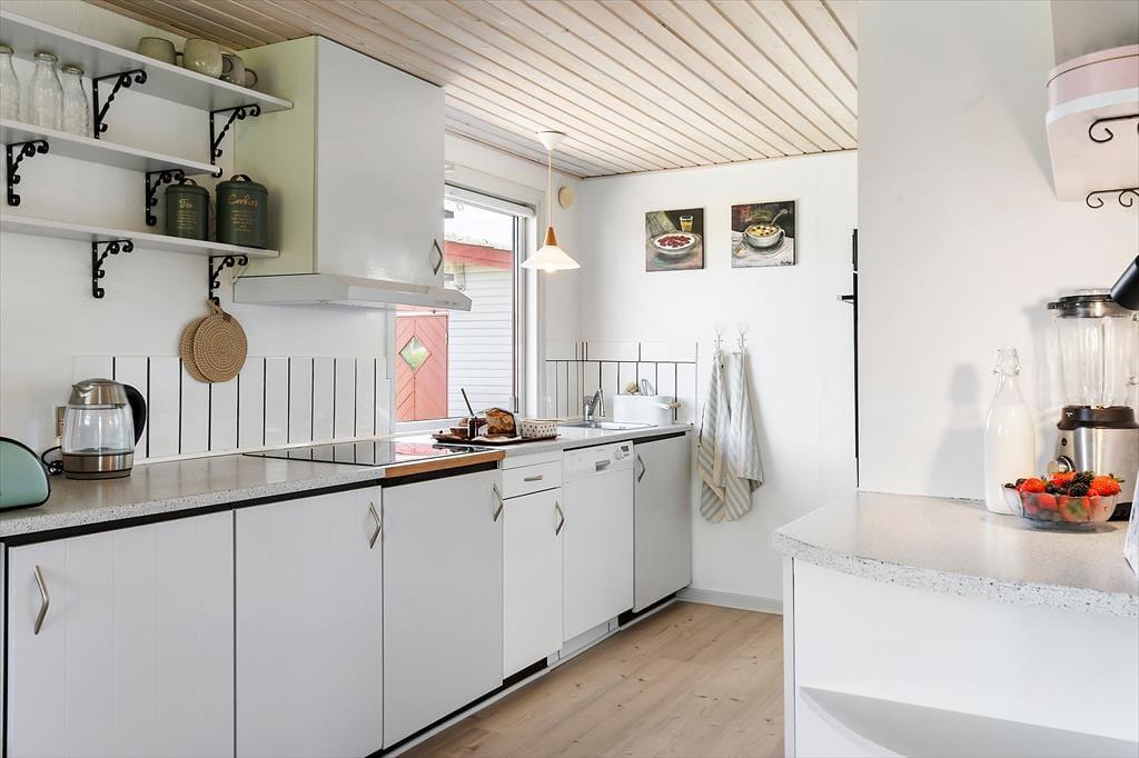 Vi byder velkommen til dette charmerende sommerhus i klassisk sommerhusstil. Her kan en familie på op til 6 personer nyde en dejlig ferie i skønne rammer. Køkkenet har en god størrelse og indeholder alt det nødvendige til ferien, herunder opvaskemaskine. Det er funktionelt og giver god plads til at tilberede feriens måltider, og det ligger i åben forbindelse med den store stue, der både rummer en spiseafdeling og et hyggeligt sofahjørne. Fra stuen er der adgang til en udestue samt terrassen, hvor I kan tilbringe mange hyggelige timer med brætspil eller gode samtaler.