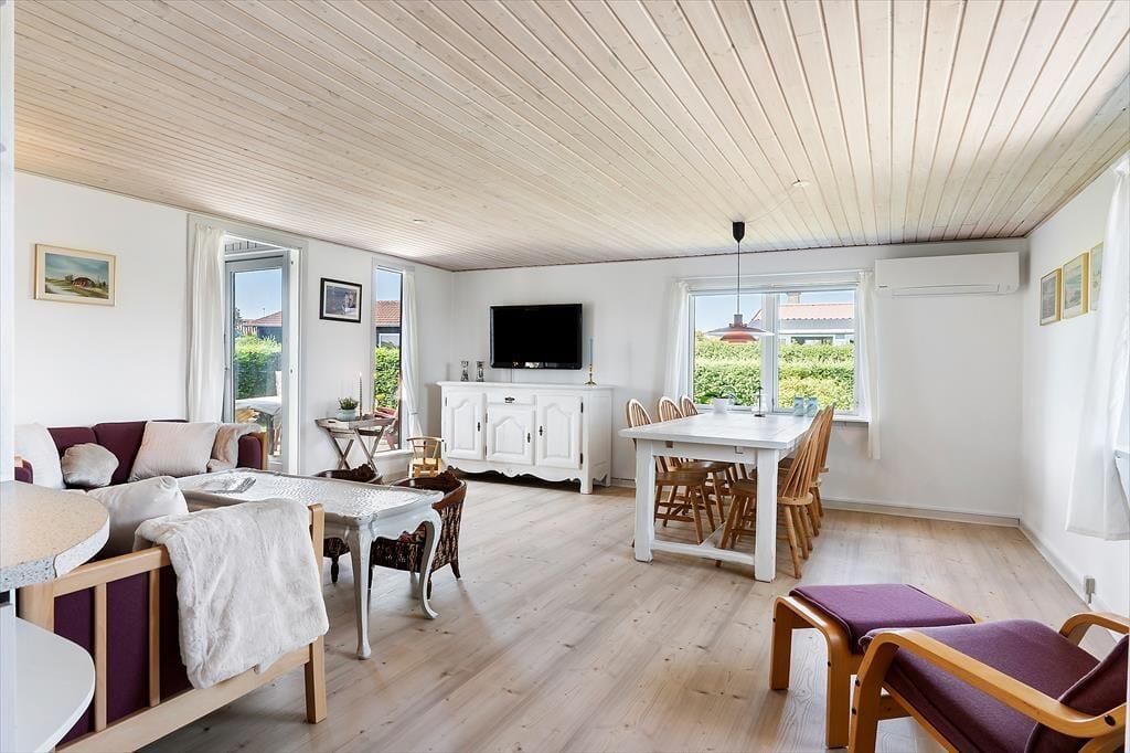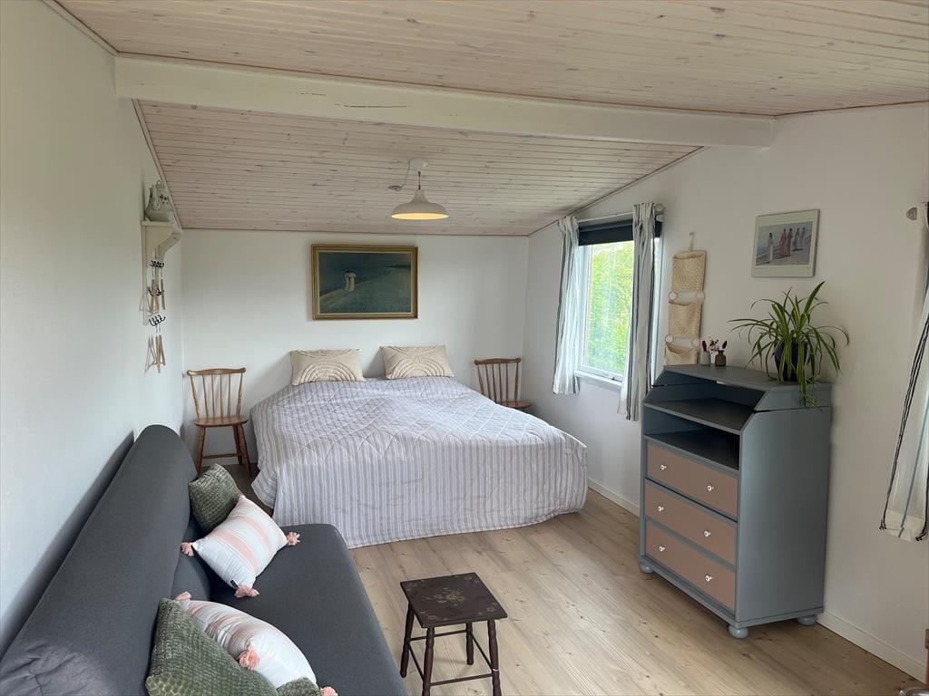 Dette hyggelige sommerhus ligger i et attraktivt ferieområde, blot 300 meter fra en dejlig sandstrand. Huset har en skøn terrasse med gode havemøbler, hvor I kan nyde solen og den friske luft i komfortable omgivelser. Når sulten melder sig, kan I tilberede feriens måltider på husets gasgrill og nyde dem under åben himmel. Den dejlige have indbyder både til leg og afslapning.