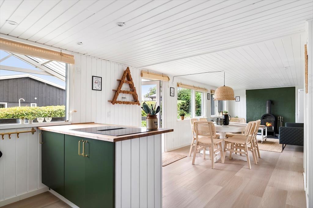 Træd ind i et klassisk dansk sommerhus, hvor ro, nærvær og feriestemning fylder rummene. Her er plads til op til seks personer, og rammerne er som skabt til afslappede dage i godt selskab. Det lyse og moderne køkken er hjertet i huset og åbent mod stuen, så du kan være en del af fællesskabet, mens maden tilberedes.