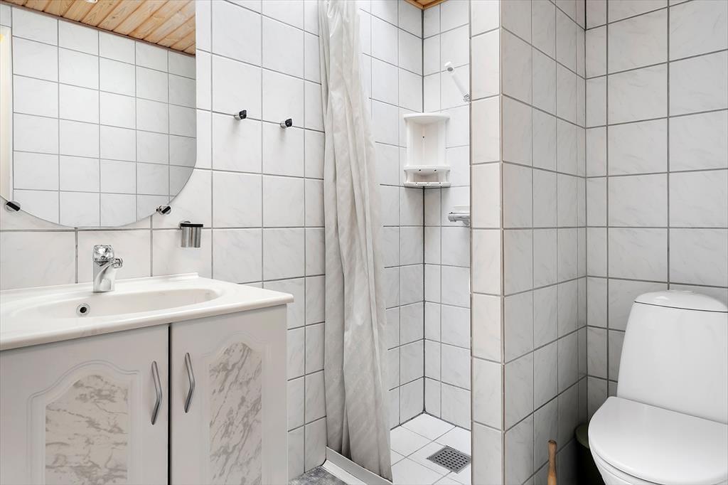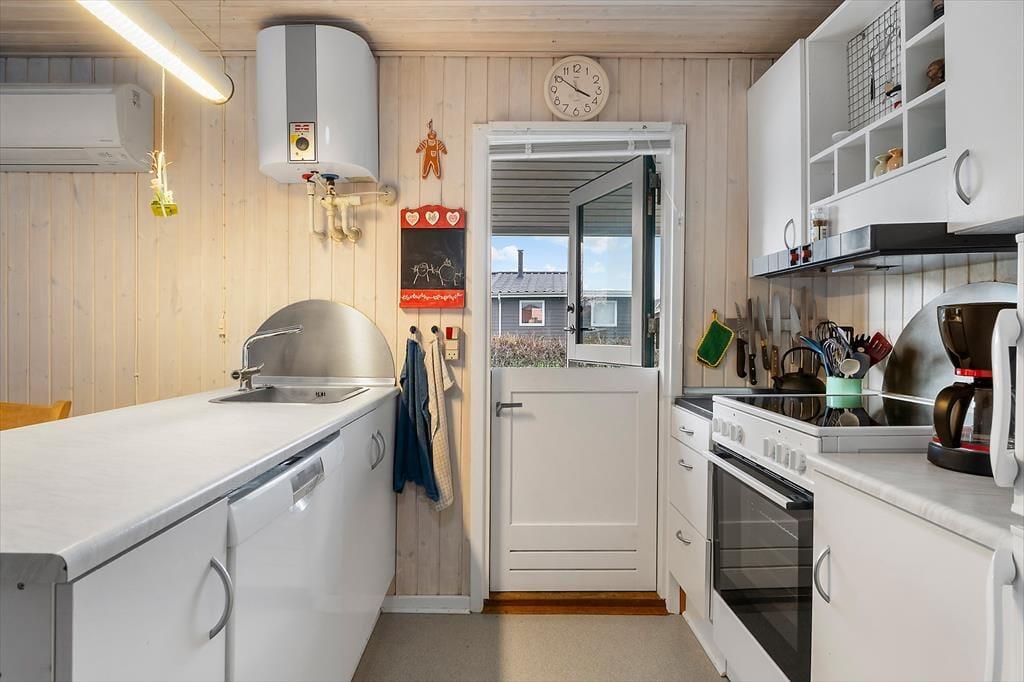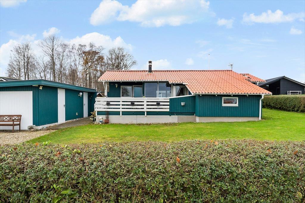 Udendørsområdet byder på en skøn terrasse. Den rummelige have med græsplæne er ideel til leg, spil og solbadning. Slap af i de komfortable solstole og nyd roen. Fra terrassen kan du beundre udsigten over sommerhusområdet, legepladsen samt et lille havkig. Ved ankomst kan du parkere bilen i indkørslen, som ligger lige op ad huset, så du nemt kan komme tørskoet indenfor. Her er der masser af plads til at nyde livet og den friske luft i fulde drag.