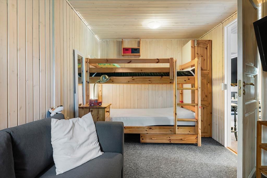 Stuen ligger i direkte forbindelse med spisepladsen og køkkenet, hvilket skaber en uformel atmosfære, hvor alle kan hygge sig sammen – også når måltiderne tilberedes. De store vinduer i stuen lader det naturlige lys strømme ind og skaber en lys og luftig stemning, der indbyder til ro og afslapning. Her kan du fordybe dig i en god bog med en kop kaffe, mens hverdagens stress forsvinder i de fredfyldte omgivelser, eller se en god film på fjernsynet.