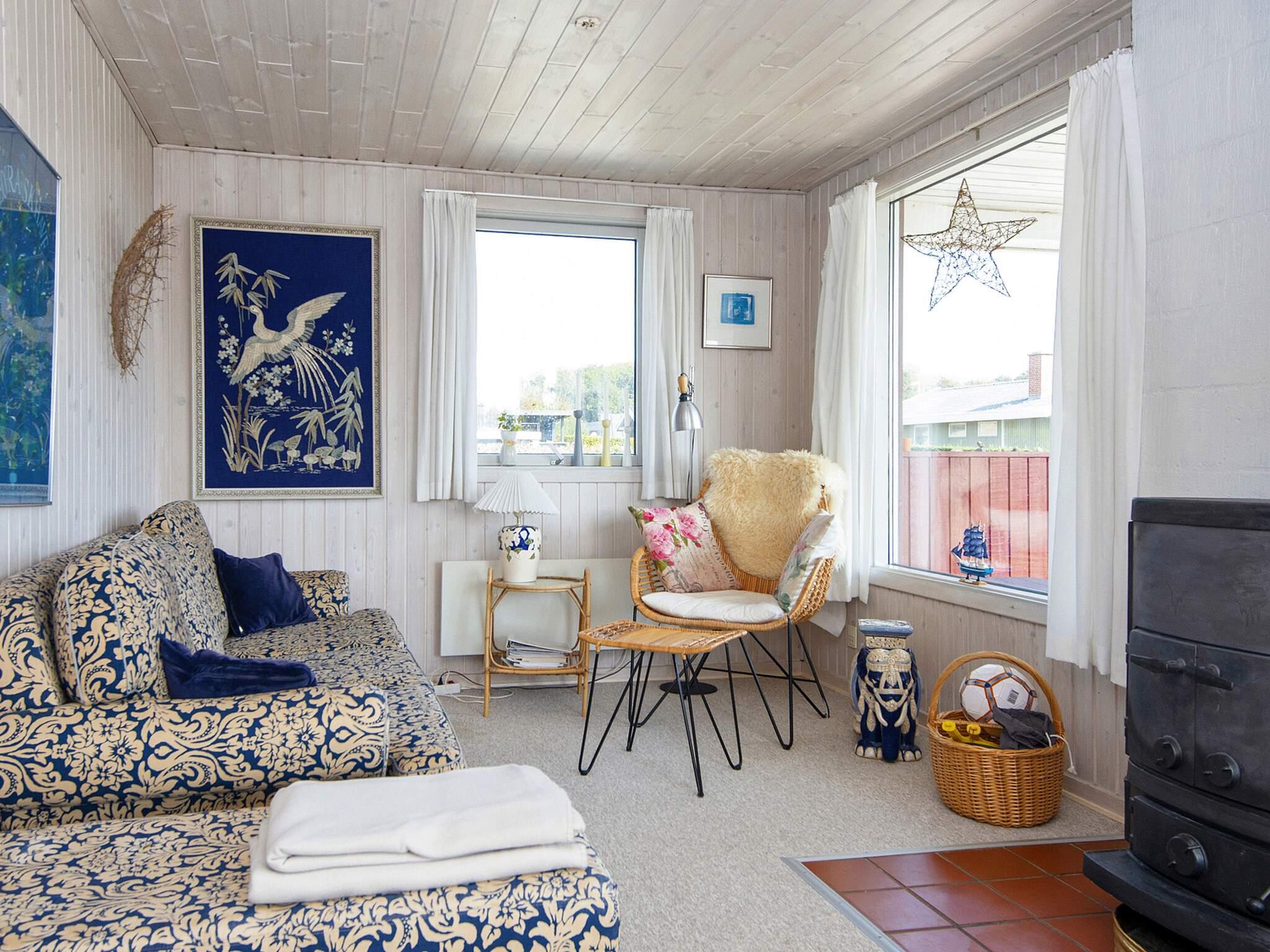 1 Opholdsstue: Brændeovn, radio, tv, kabel-tv, høj stol