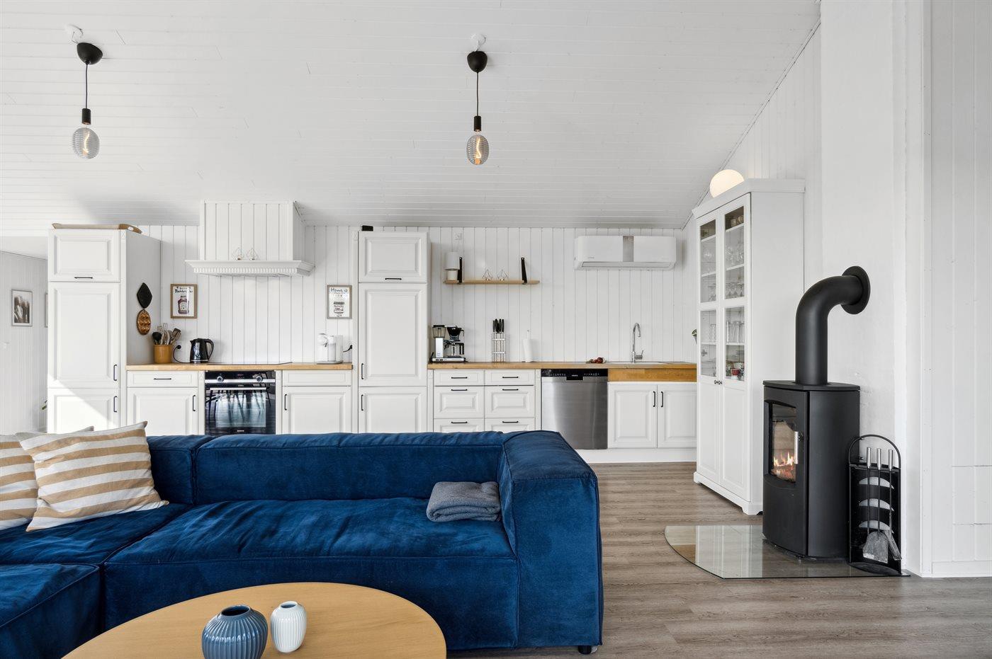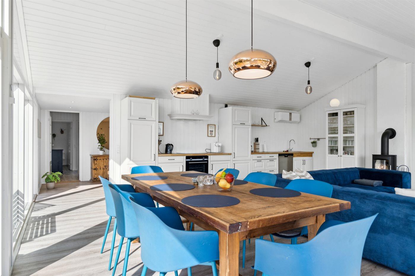 Indvendig fremstår sommerhuset i rigtig fin stand og indretningen er lyst og moderne med en rigtig god planløsning, som passer godt til f.eks. en eller to familier med børn eller man kan invitere bedsteforældrene med på ferie. Alt i alt et sommerhus, der byder på de bedste betingelser for en dejlig ferie.