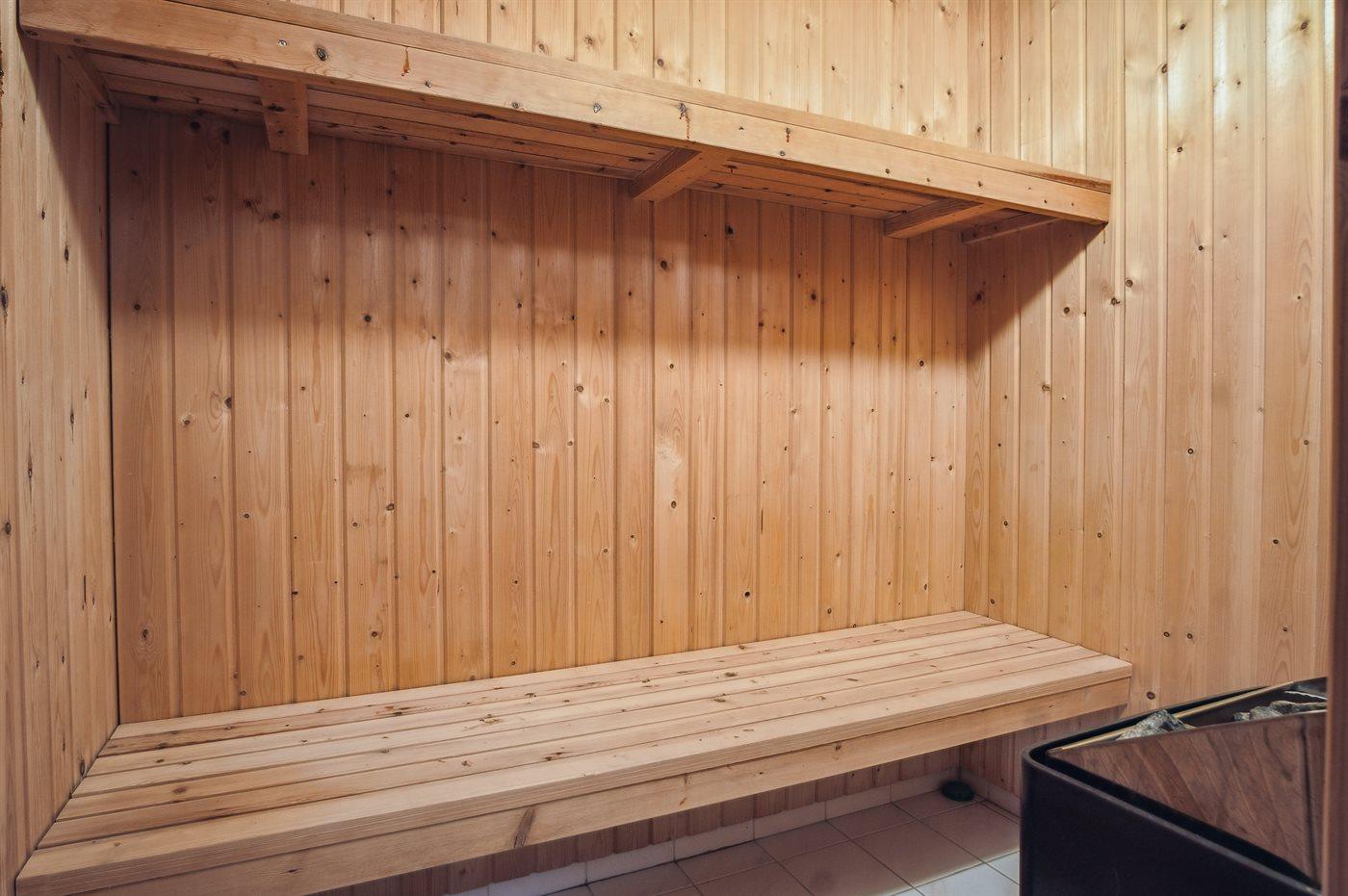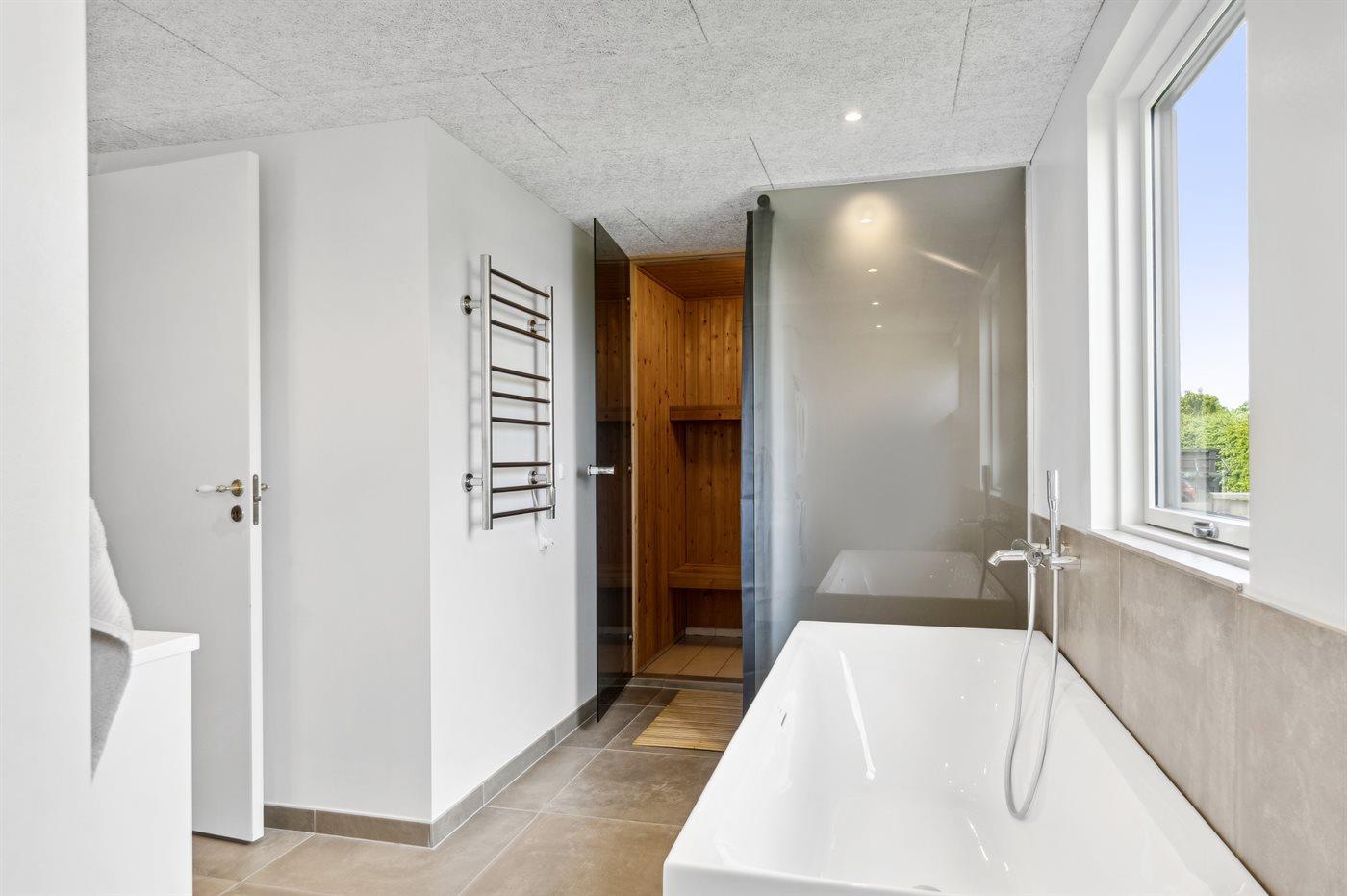 Der er 2 badeværelser med bruseniche og 2 toiletter. Der er gulvvarme på 2 badeværelser.. Badekar. I saunaen er der mulighed for afslapning.