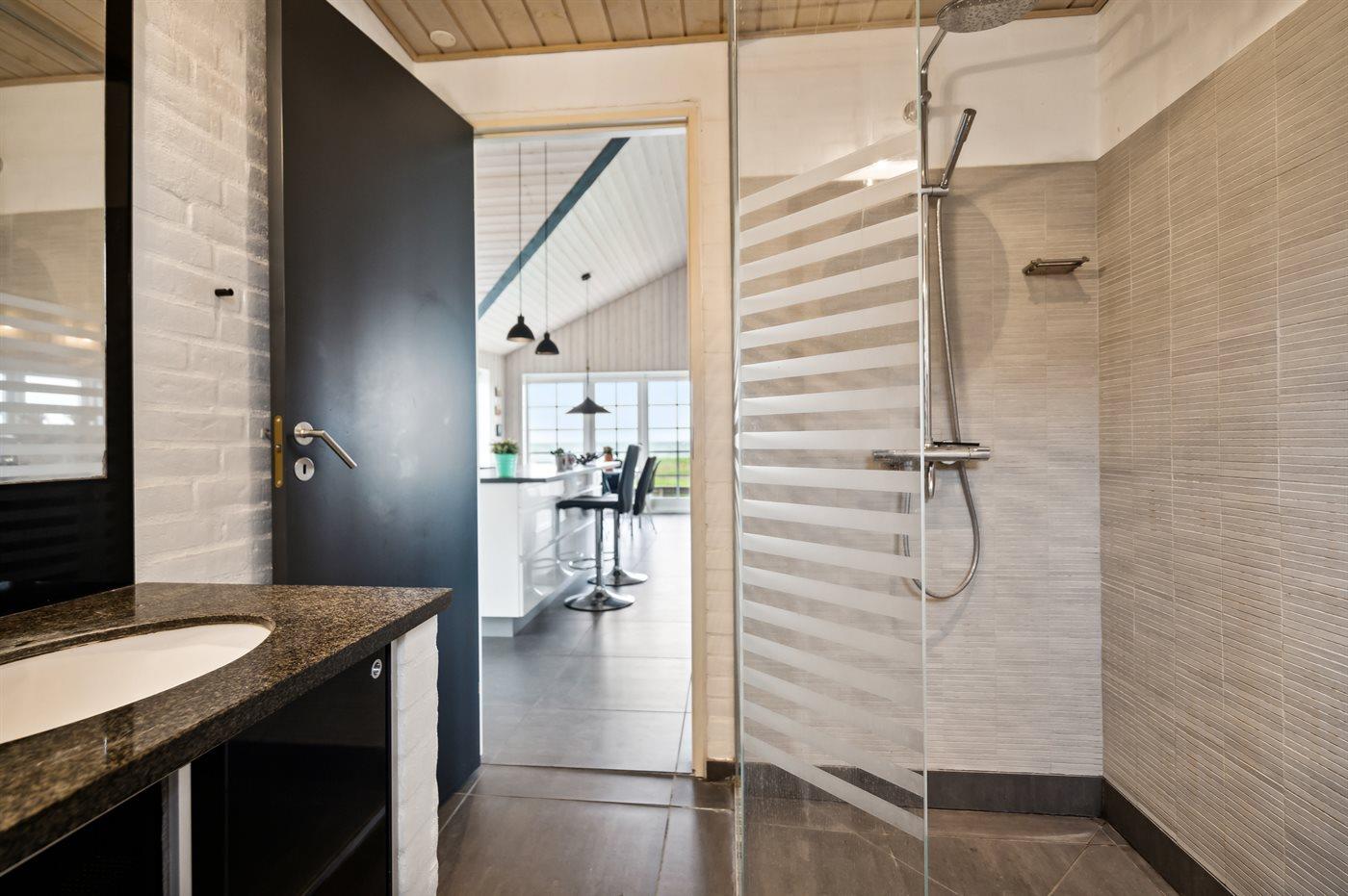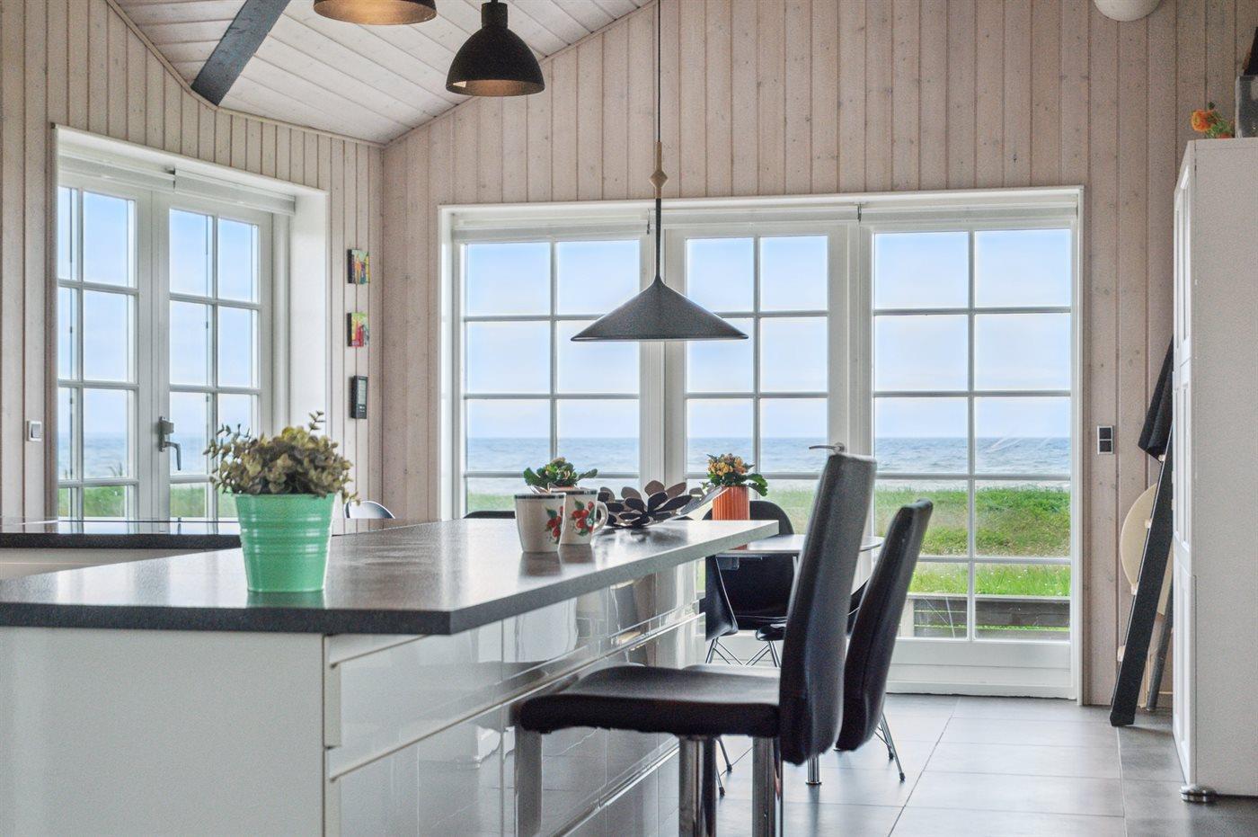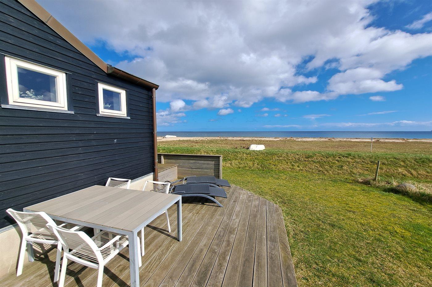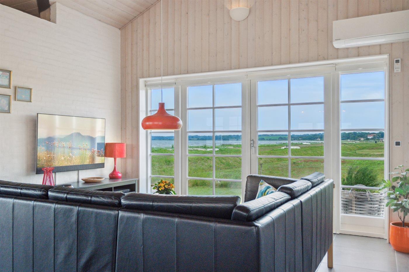 Der er 180 graders panoramaudsigt over vandet og det er svært, at løsrive sig fra dette syn. Dette gælder både fra det skønne terrasseareal, som går hele vejen rundt om huset og hvor der således altid er mulighed at finde en plads med læ, eller inde fra sommerhuset – her er der tale om en ganske særlig oplevelse.