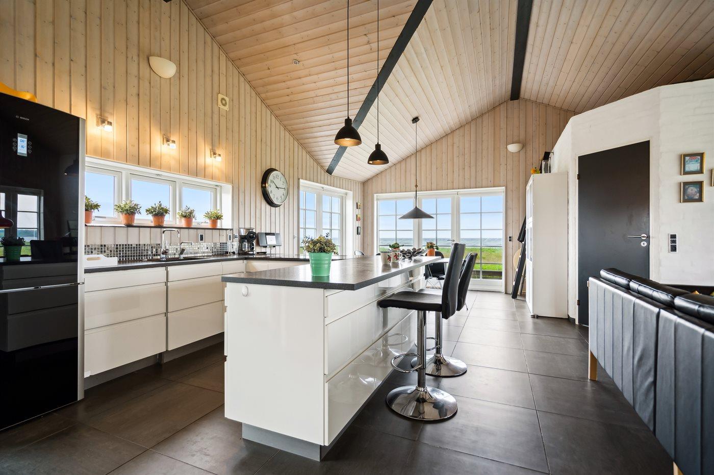 Køkkenet er udstyret med 1 køleskab. Der er 4 induktionskogeplader, varmluftovn samt opvaskemaskine.
