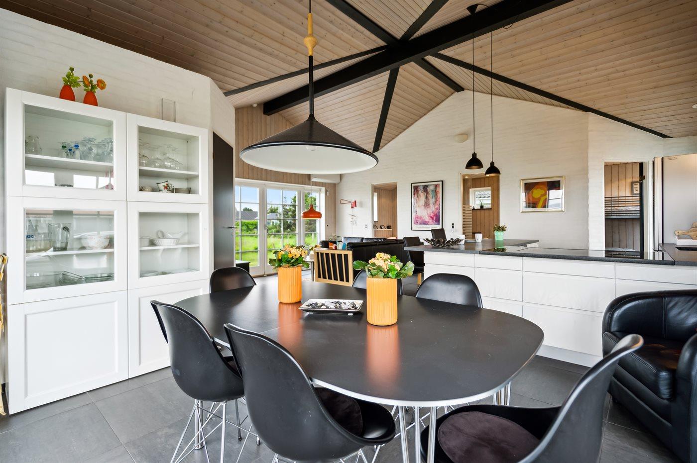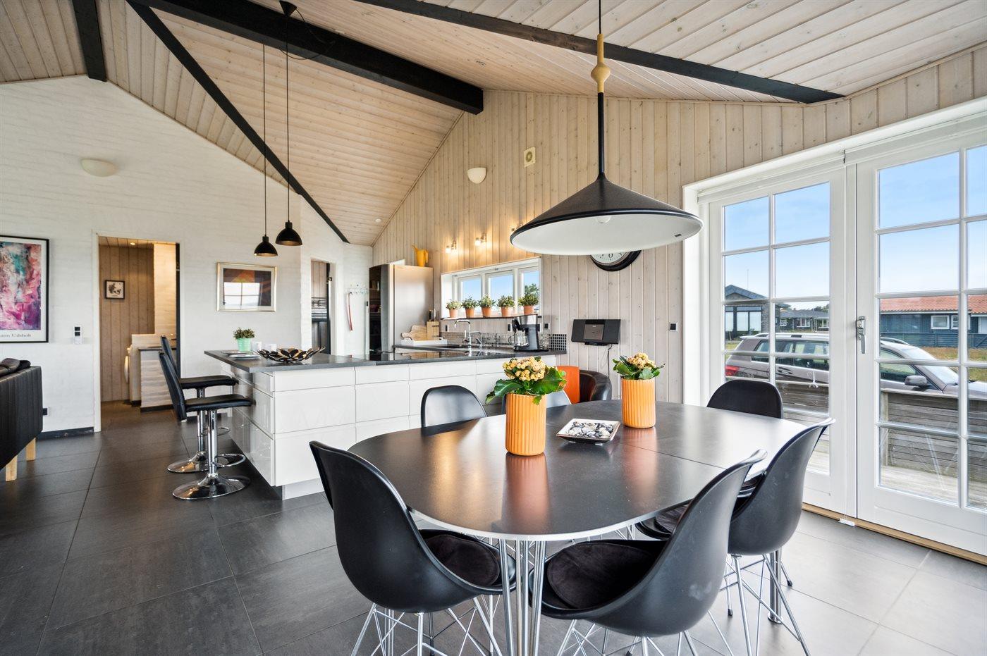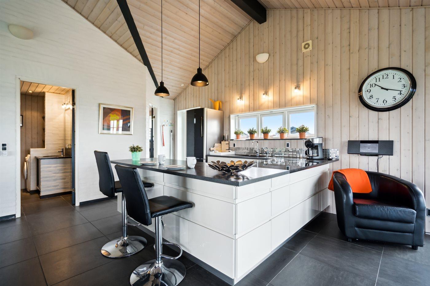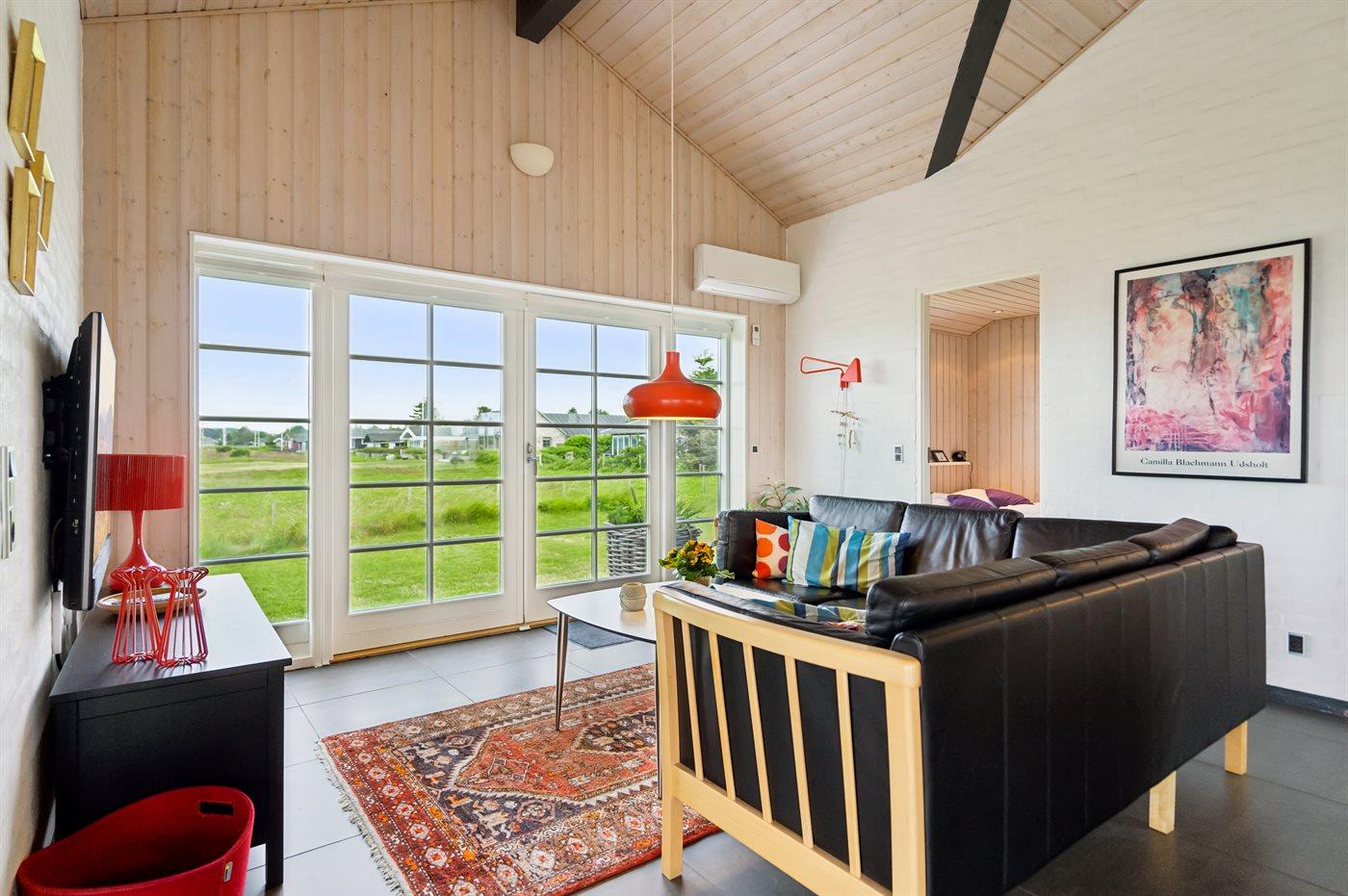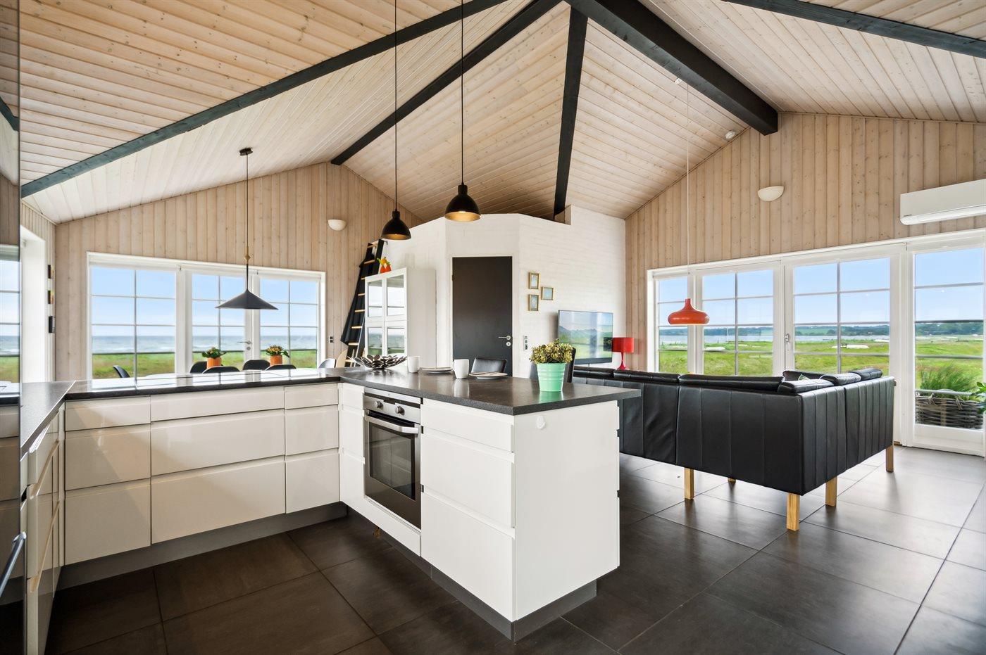 Sommerhuset fremstår lyst og moderne med en god indretning, så det passer perfekt til f.eks. en familie med 2-3 børn. Sommerhuset har et stort og åben køkken-/alrum og stue i ét hvorfra udsigten også kan nydes og fra to af soveværelserne er der også udsigt over vandet.