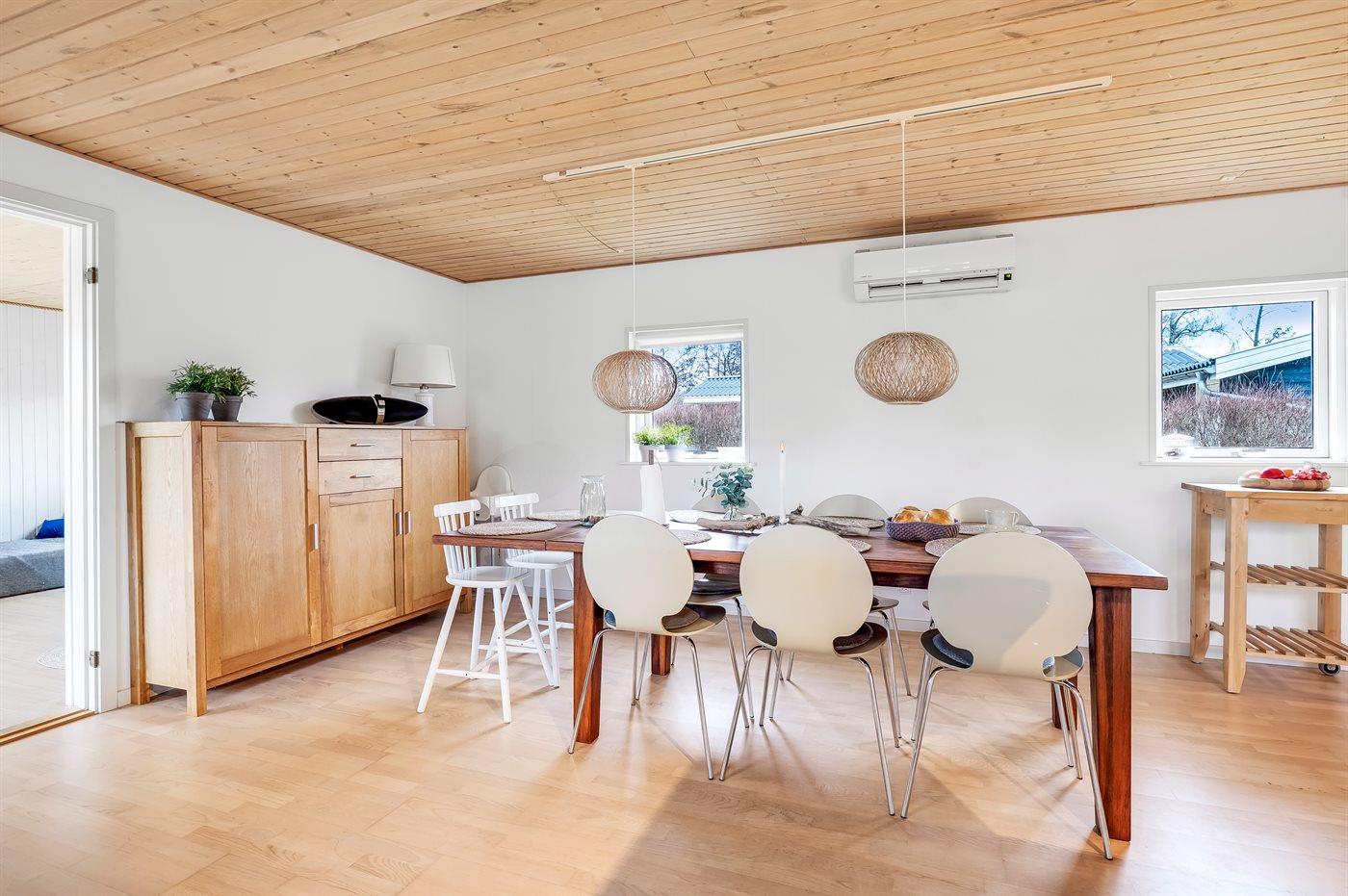 Indvendig fremstår sommerhuset i fin stand og har gennemgået en renovering i 2025. Indretningen er lys med en fin planløsning, som passer godt til f.eks. to par eller en familie med større børn - 4 af sovepladserne findes i et dejligt og velholdt anneks. Alt i alt er dette et sommerhus, der byder på gode betingelser for en dejlig ferie.