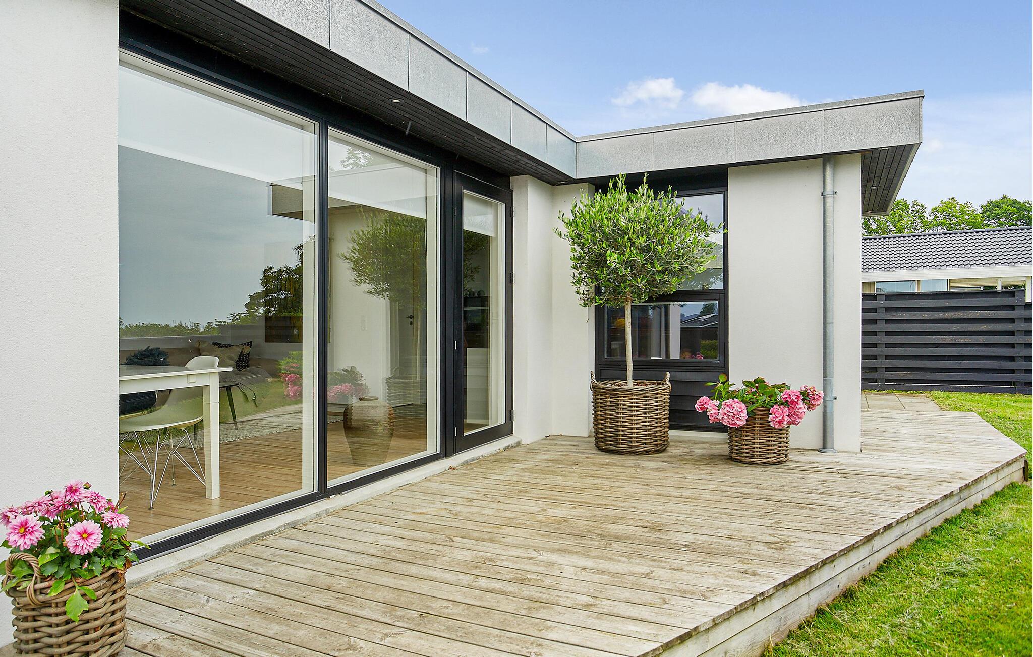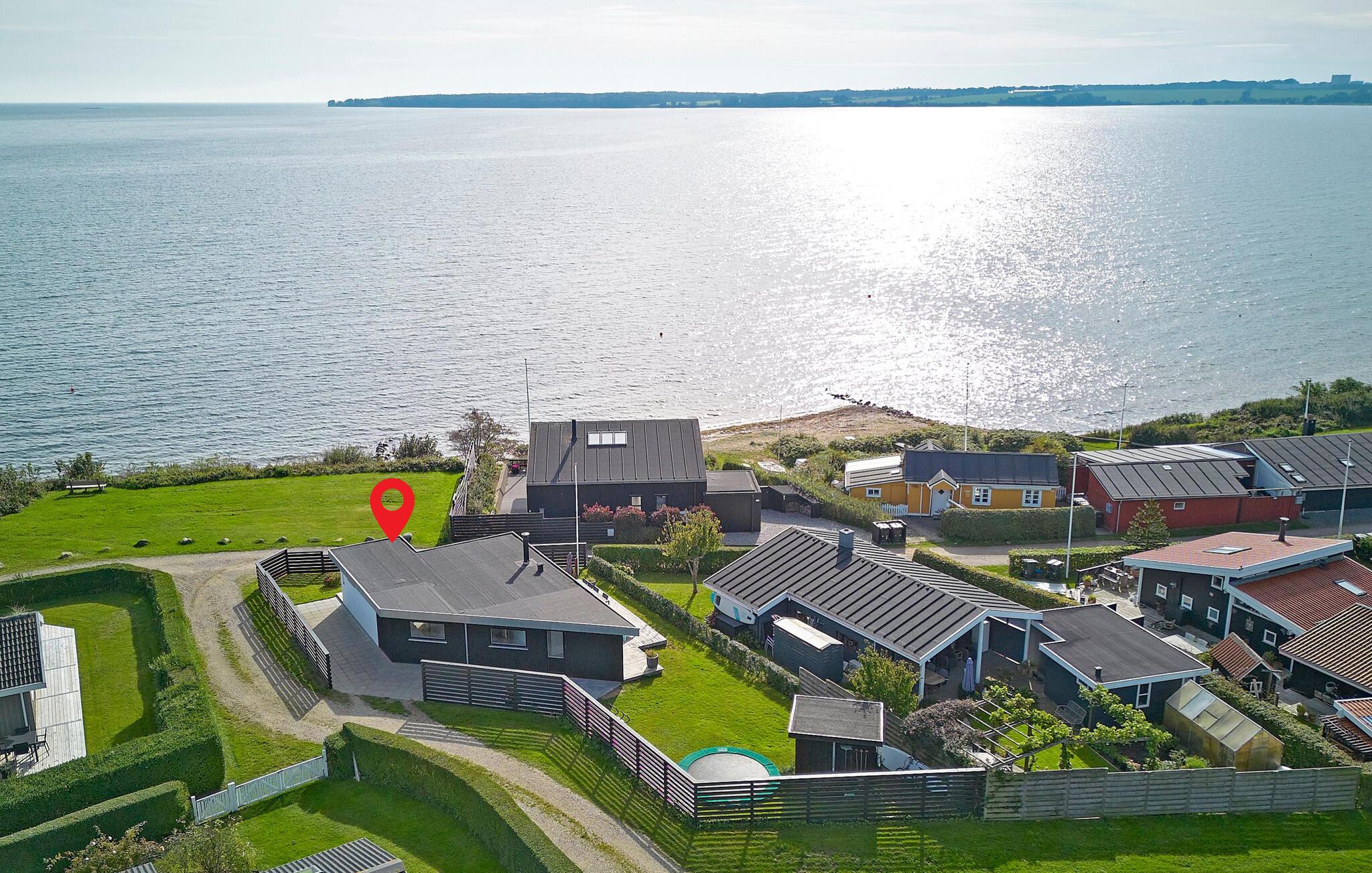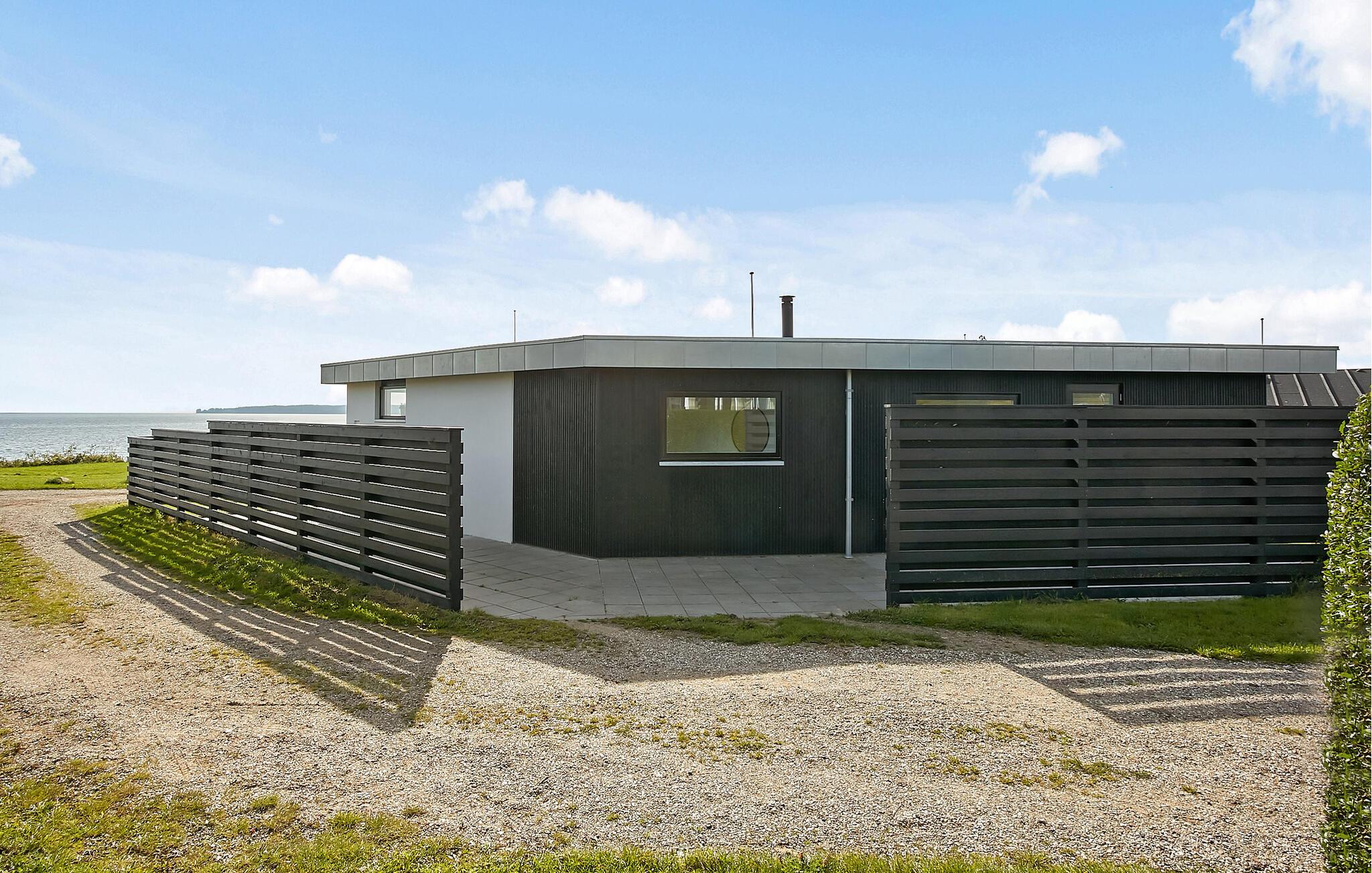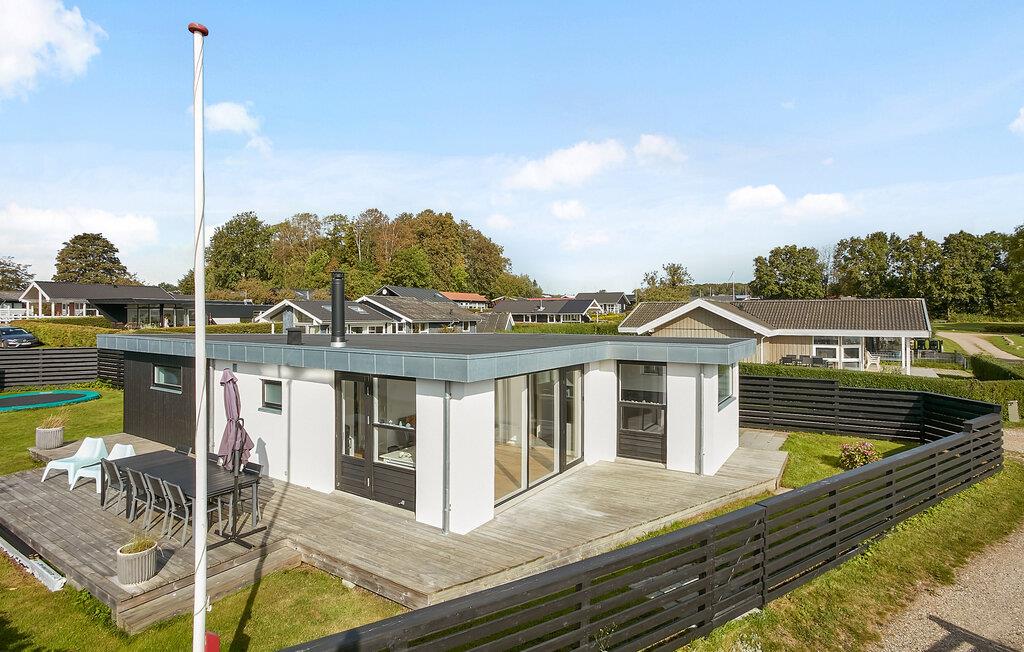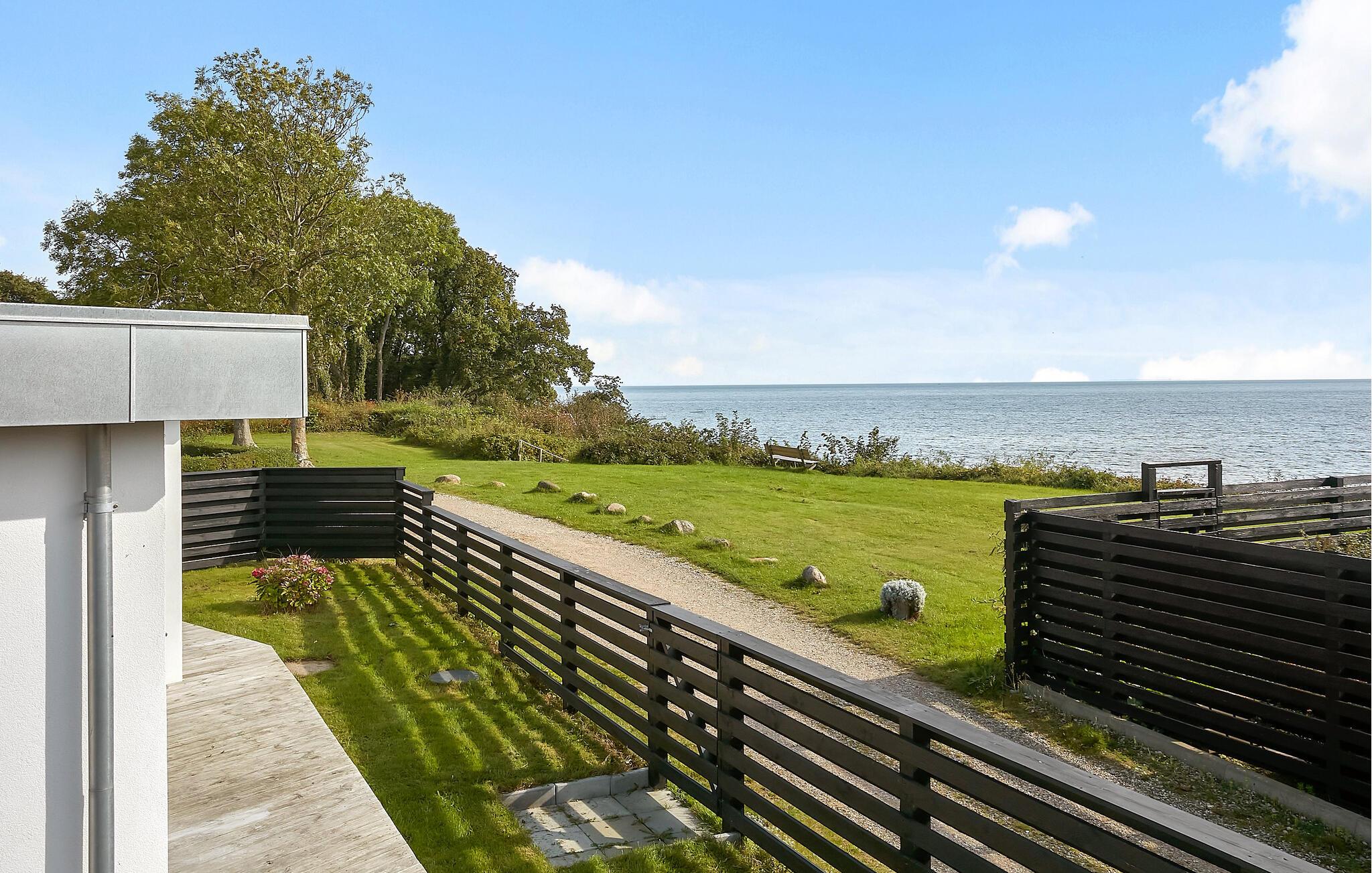 Stilfuldt feriehus med panoramaudsigt over havet og moderne skandinavisk design ved Juelsminde.