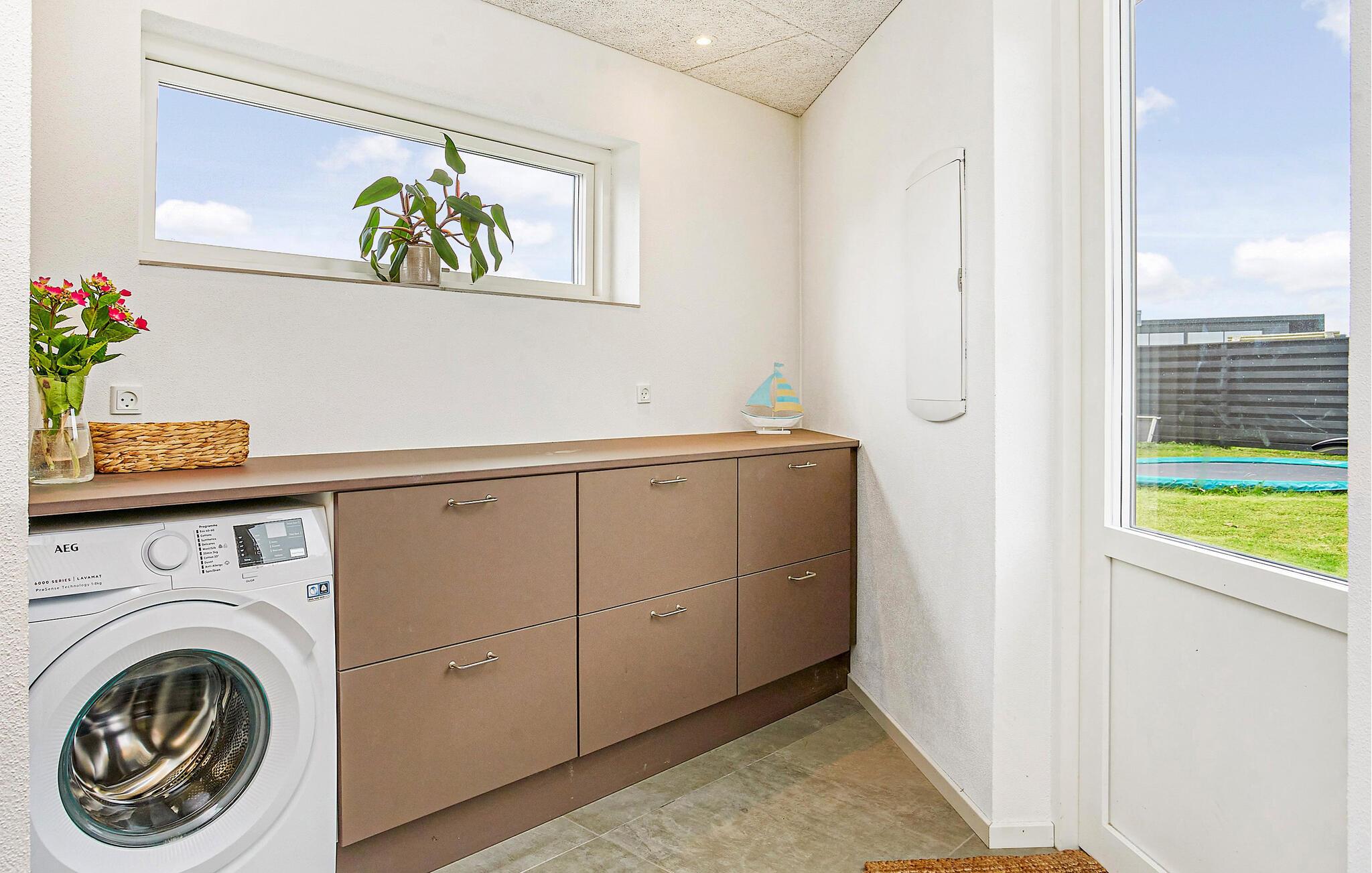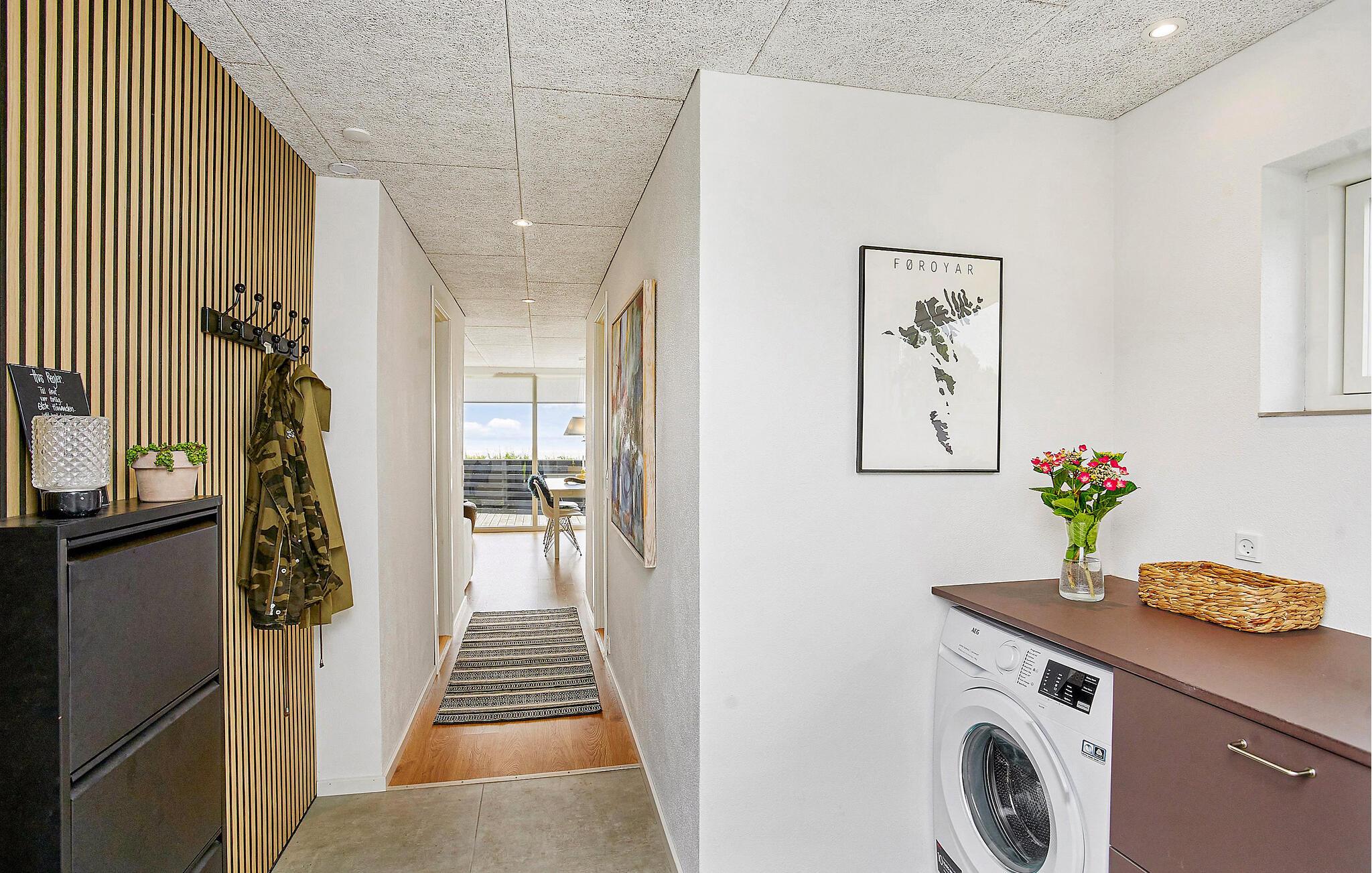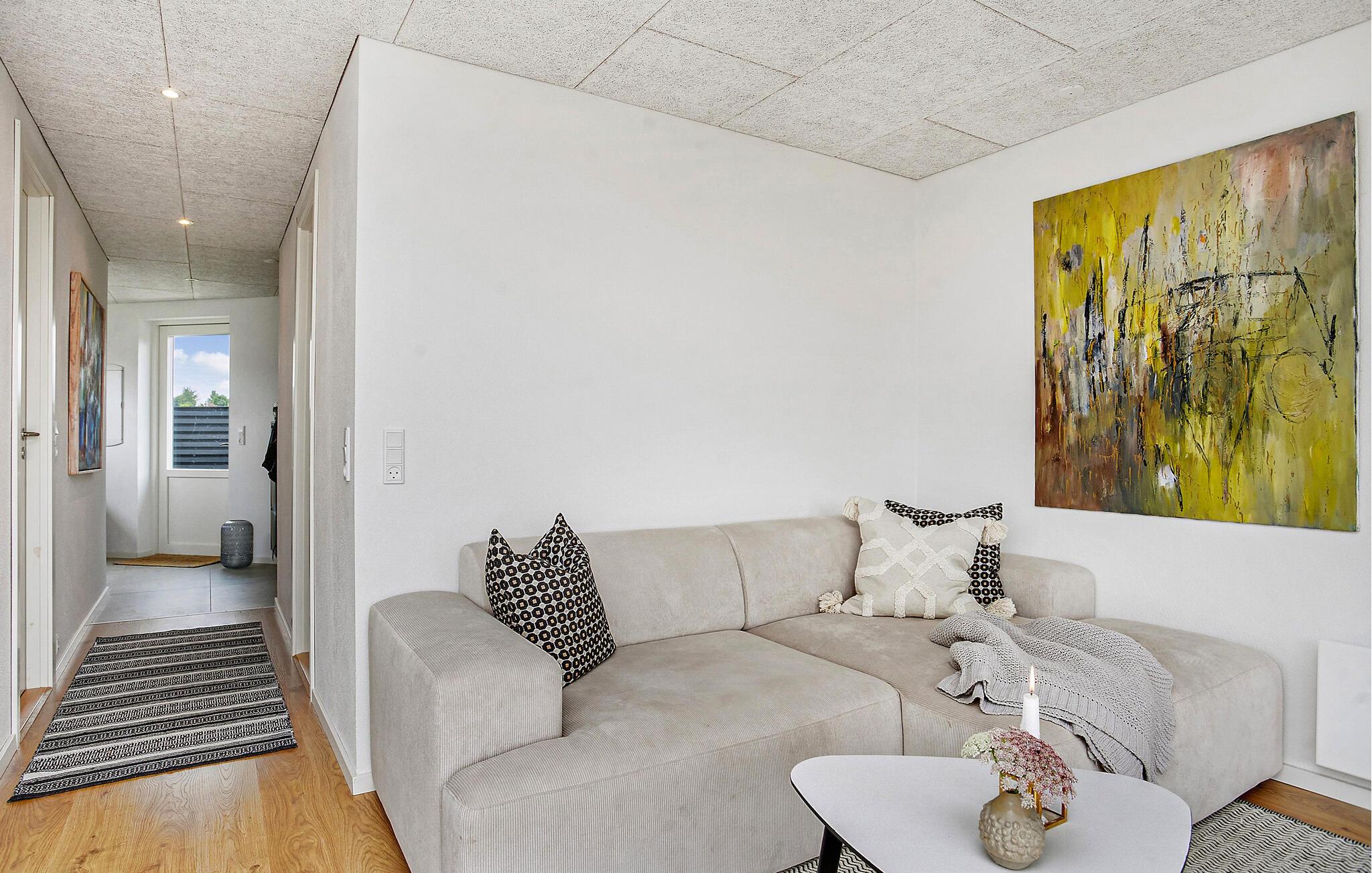 Dette feriehus er perfekt til gæster, der sætter pris på skandinavisk design, en afslappet atmosfære og tæt på havet. Nyd den moderne arkitektur, store vinduer og sofistikeret indretning, hvilket skaber et lyst, luftigt opholdsrum med udsigt til vandet. Den åbne stue kombinerer køkken, spiseplads og sofahjørne til en harmonisk helhed. Køkkenet er moderne og byder på god plads til at lave mad sammen. Nyd udsigten over det grønne eller havet fra spisebordet. Den hyggelige brændeovn skaber en behagelig atmosfære selv på kølige dage.