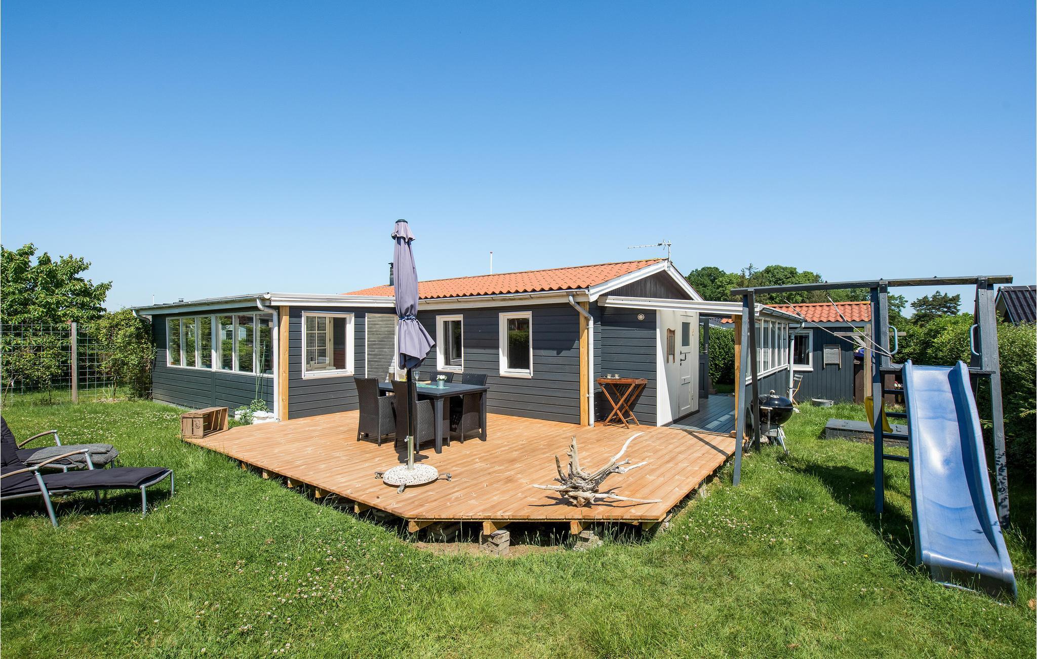 Tæt på en virkelig god og børnevenlig sandstrand og i et opvokset sommerhusområde ligger dette hyggelige sommerhus. Der er flere gode terrasser ved huset, to med overdækning og en af de overdækkede er lukket på alle sider som en havestue. Rummet vil helt sikkert blive brugt til hygge, at spille spil, nyde aftensmaden på en kølig aften eller måske som børnenes legerum. Huset er indrettet med en pæn stue med en god spiseplads og en sofagruppe tæt ved brændeovnen, og hvor det godt udstyrede køkken ligger i forlængelse af stuen. Der er to gode soveværelser i selve sommerhuset samt et anneks med yderligere fire sovepladser i etagesenge. Annekset ligger tæt på huset blot et smut over terrassen, de lidt større børn vil helt sikkert synes om, at have helt deres eget "hus". Der er to badeværelser i alt - et i huset og et med adgang fra den overdækkede terrasse. Ved huset findes desuden en carport, så jeres bil kan stå i ly for sol og regn.