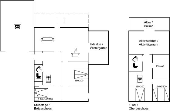 Der er i alt 4 soveværelser. Sovepladserne fordeler sig på: 6 sovepladser i dobbeltsenge. 2 sovepladser i enkeltsenge.1 soveplads i køjeseng. Derudover er der 1 stk. barneseng.