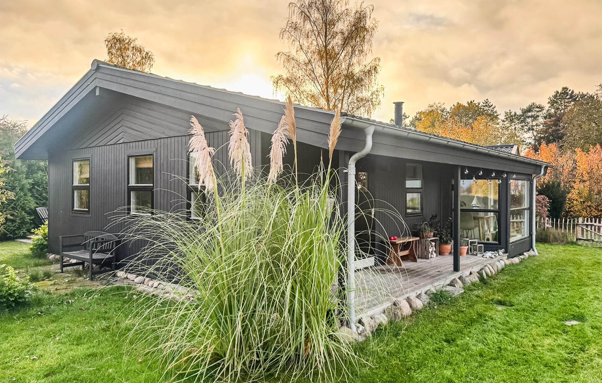 Hyggeligt feriehus på Askø med havudsigt, brændeovn og stor have med trampolin og bålsted.