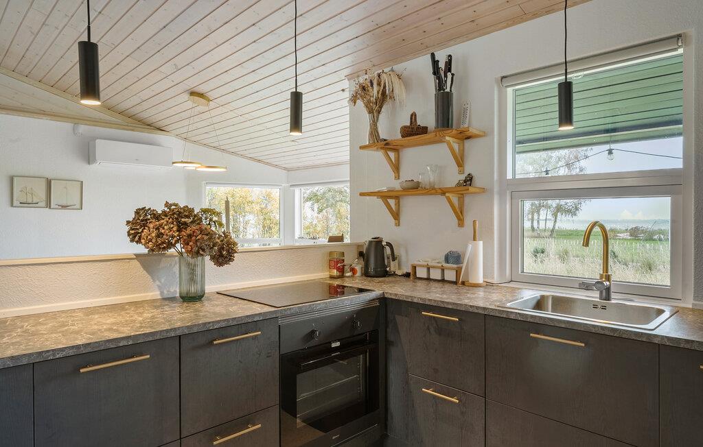 Jeres feriehus på Askø imponerer med sin charmerende og rustikke indretning, som straks giver jer en følelse af tryghed. Gør jer det behageligt i den lyse stue, hvor brændeovnen på køligere dage sørger for varme og hygge. Det store sofaområde indbyder til afslapning og giver en fantastisk udsigt til det grønne. Start dagen med en omfattende morgenmad ved spisebordet i den lysfyldte spiseafdeling, som inspirerer jer til at planlægge jeres udflugter.
