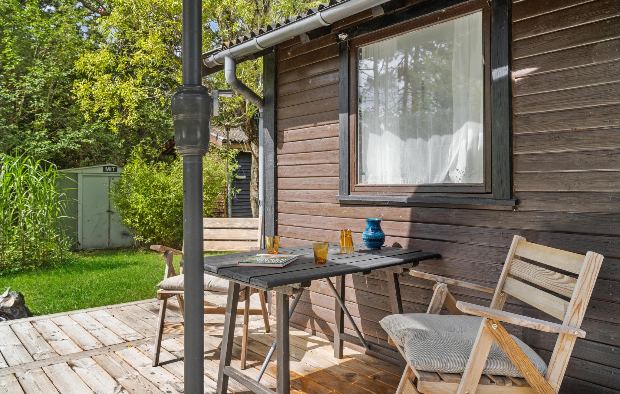 Charmerende sommerhus på Askø med brændeovn, terrasse og tæt på vand i naturskønne omgivelser.