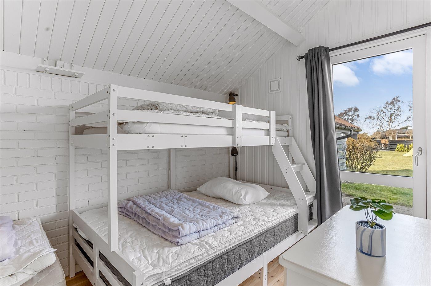I det andet rum er der 2 sovepladser i en seng nederst på 120x200 cm og en køje øverst på 90x200 cm enkeltseng.