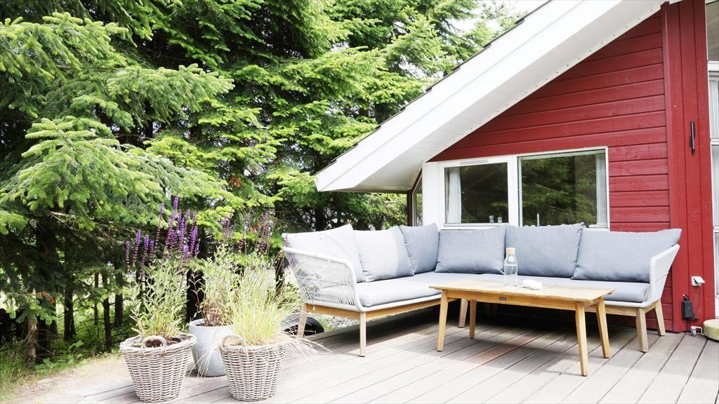 Udendørs kan du nyde livet på den delvist overdækkede terrasse mens solen går ned og aftenen falder på. Måske du hellere vil mærke solens stråler og nyde at slikke sol på terrassen eller bare tage en middagslur i skyggen under et træ. Hvis du har brug for action, kan du udfordre de andre i en dyst i haven med et spil petanque, badminton eller fodbold. Her er der muligheder for det hele.