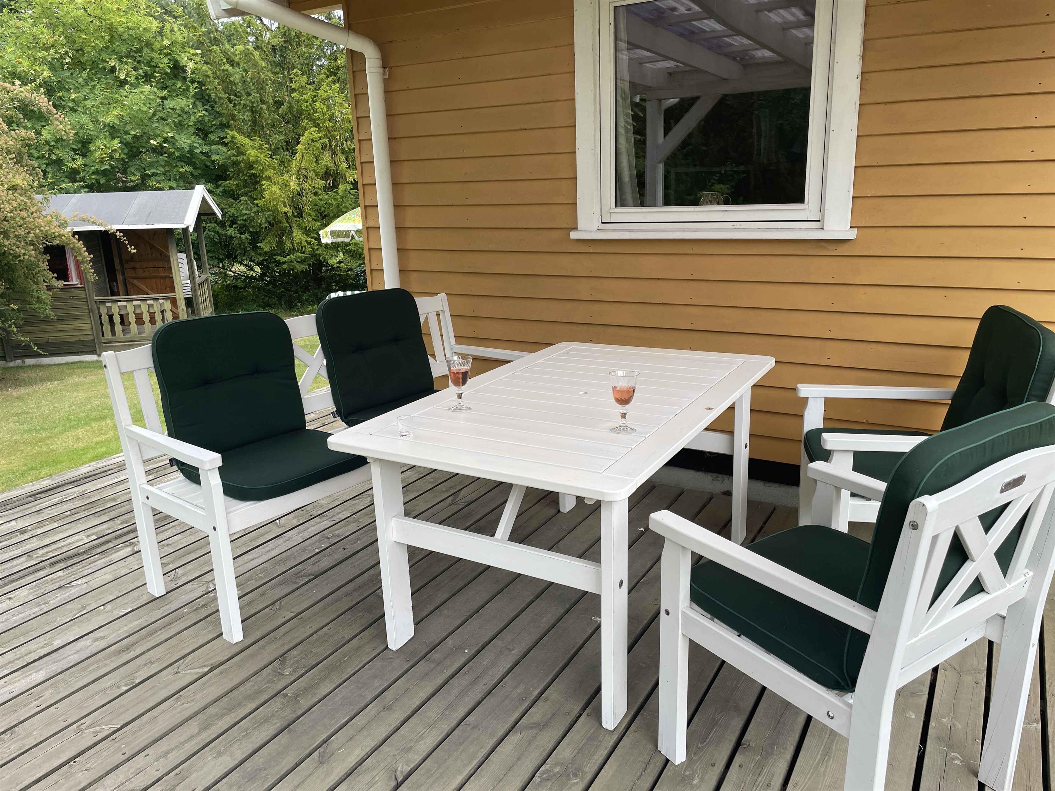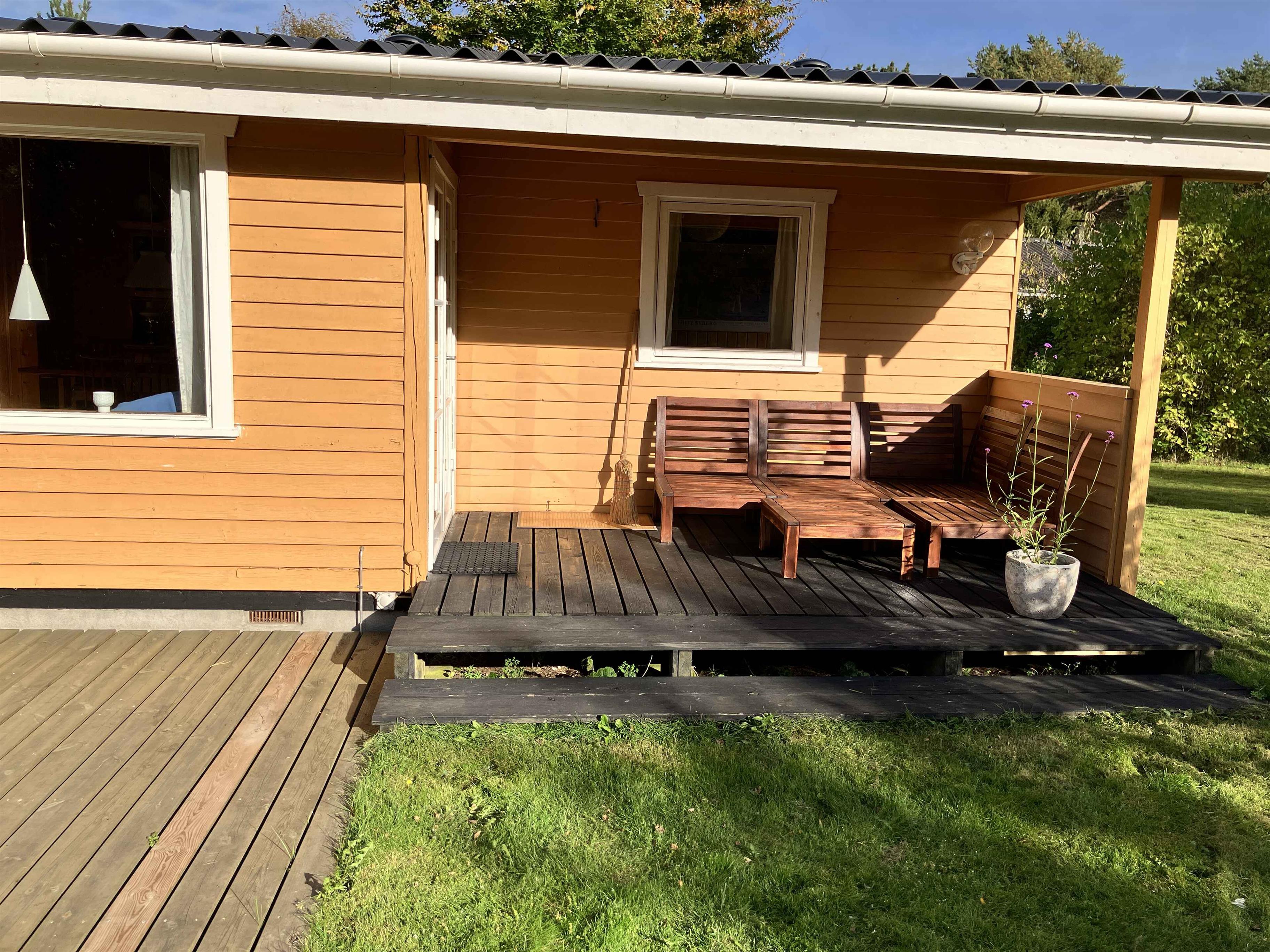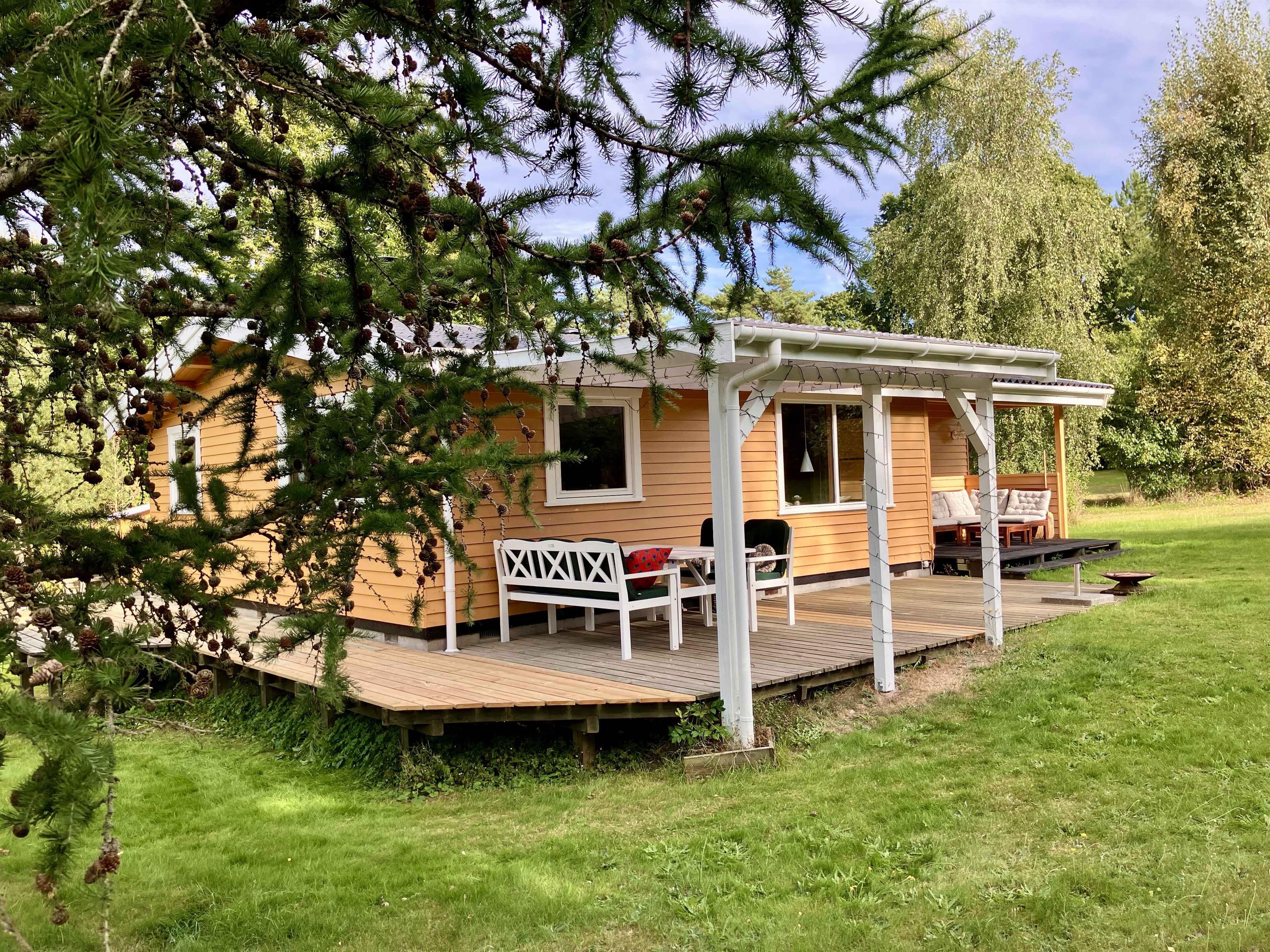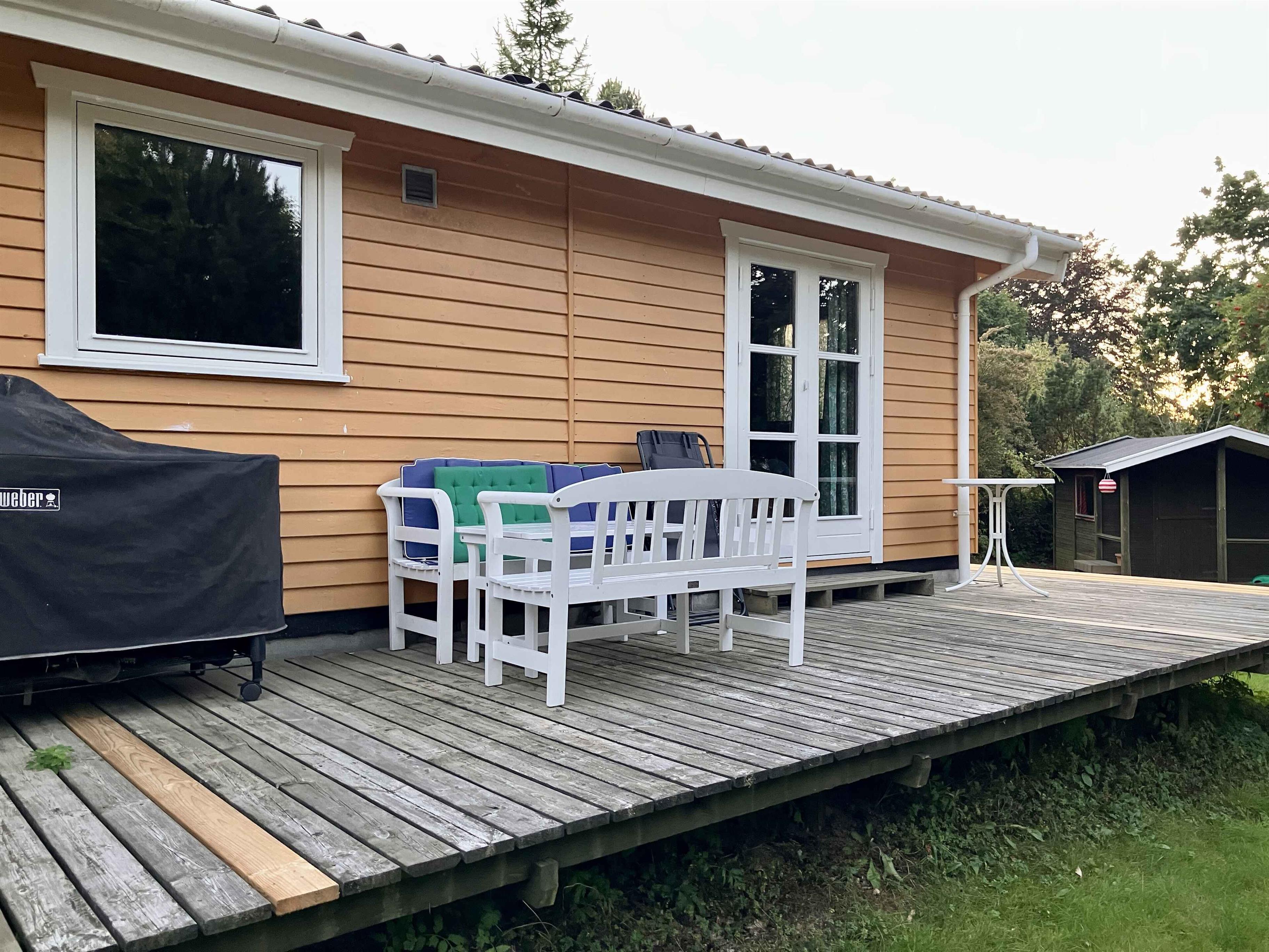 Solhi er et charmerende træsommerhus nær strand og skov med stor have, terrasser og moderne faciliteter.