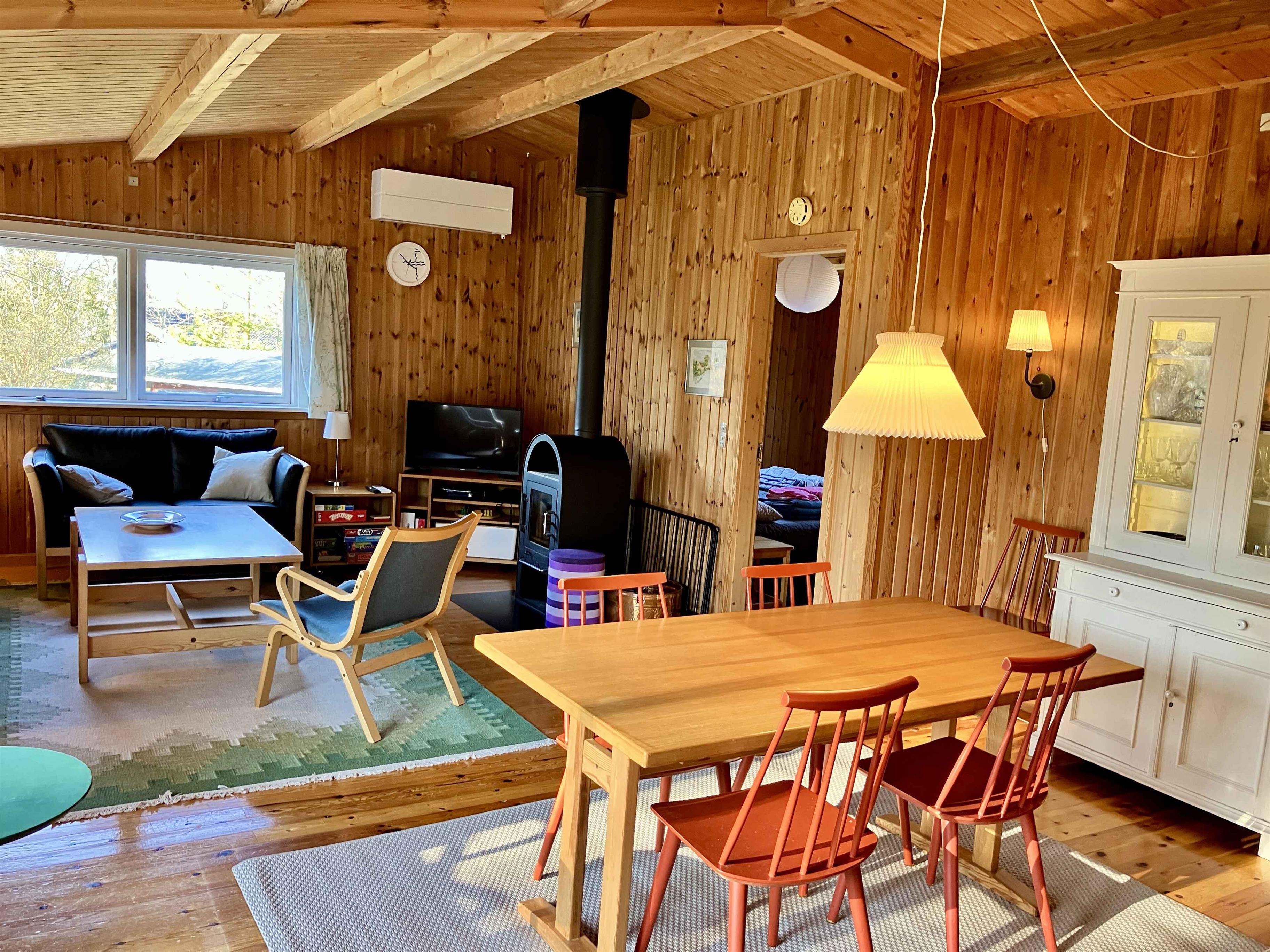 Solhi er et charmerende, personligt indrettet træsommerhus med WiFi, stor have på ca 1000 kvm og flere terrasser, hvor både sol og skygge inviterer til afslapning. Indretningen kombinerer originale elementer med moderne bekvemmeligheder. Badeværelset bliver renoveret start 2026. Huset har en rummelig stue med loft til kip, brændeovn og spiseplads. Tre værelser giver fleksible sovepladser til maks. 4 voksne og 2 børn under 150 cm: børneværelse med en køjeseng, soveværelse med dobbeltseng på 180x200 cm og det andet soveværelse med 2 gange 80x200 cm senge, hvoraf den ene kan flyttes ind i børneværelset i stedet for skrivebordet. Køkkenet og bad er renoveret i januar 2026. Den store have og det lille børneanneks giver plads til leg, afslapning. Børn kan more sig med legetøj, brætspil og bøger på både dansk og tysk. TV er med streaming-apps, som I skal bruge jeres egne logins til. Solhi er et helt ikkeryger-hus og tilbyder faciliteter som gratis parkering, bålsted, grill, høj stol og rejseseng (efter aftale), lydanlæg og TV. Varmepumpen fra 2025 giver god indeklima og lave EL-udgifter. Med sin blanding af ro, naturoplevelser, kultur og nærhed til storbyen, er Solhi den perfekte base for en uforglemmelig ferie ikke langt fra Østersøen og stranden i Odsherred. Området: Oplev Odsherred og Høve Strand – et unikt naturskønt område ud til Sejerøbugten med brede, børnevenlige sandstrande, fredelige skove og istidsskabte bakker. Høve Strand byder på lave klitter, gode badeforhold og dejlige vandre- og cykelruter, perfekt til rolig afslapning og aktive udendørsoplevelser. Området er kendt for sin smukke natur og rige dyreliv, herunder hyppige besøg af nysgerrige rådyr i sommerhusets store have. Sejerøbugtens rolige farvande indbyder til kajakroning, windsurfing og fiskeri og du kan nye en kold øl og en burger på Lillero efter en dag på stranden. Beliggenheden er ideel med kun ca. 1 times kørsel til København, ca. 40 minutter til Roskilde og ca. 2,5 timer til Aarhus (med færge), hvilket gør det nemt at kombinere ferie i fredelige naturskønne omgivelser med dagsture til omkringliggende attraktioner, såsom Sommerland Sjælland, Sagnlandet Lejre, Andelslandsbyen Nyvang og Vikingeskibsmuseet og alle attraktioner i byerne. I sommermånederne er der for eksempel også Vig Tuske- og Kræmmermarked hver onsdag og lørdag, hvor man kan lave gode loppefund. Du kan købe kød og øg i en nærliggende gårdbutik hvor børnene kan se på høns og klappe kaniner og på en besøgsgård i Høve kan man ride og klappe geder. Forkæl jeg med en middag på gourmetrestaurant Formel B's sommer popup restaurant Lille B i gåafstand (25 minutter). Andre gourmetoplevelser: Dragsholm Slot og Restaurant MOTA i Anneberg Kulturpark er ca. 20 minutters køretur væk. Obs, udlejes ikke til erhversmæssigt brug.