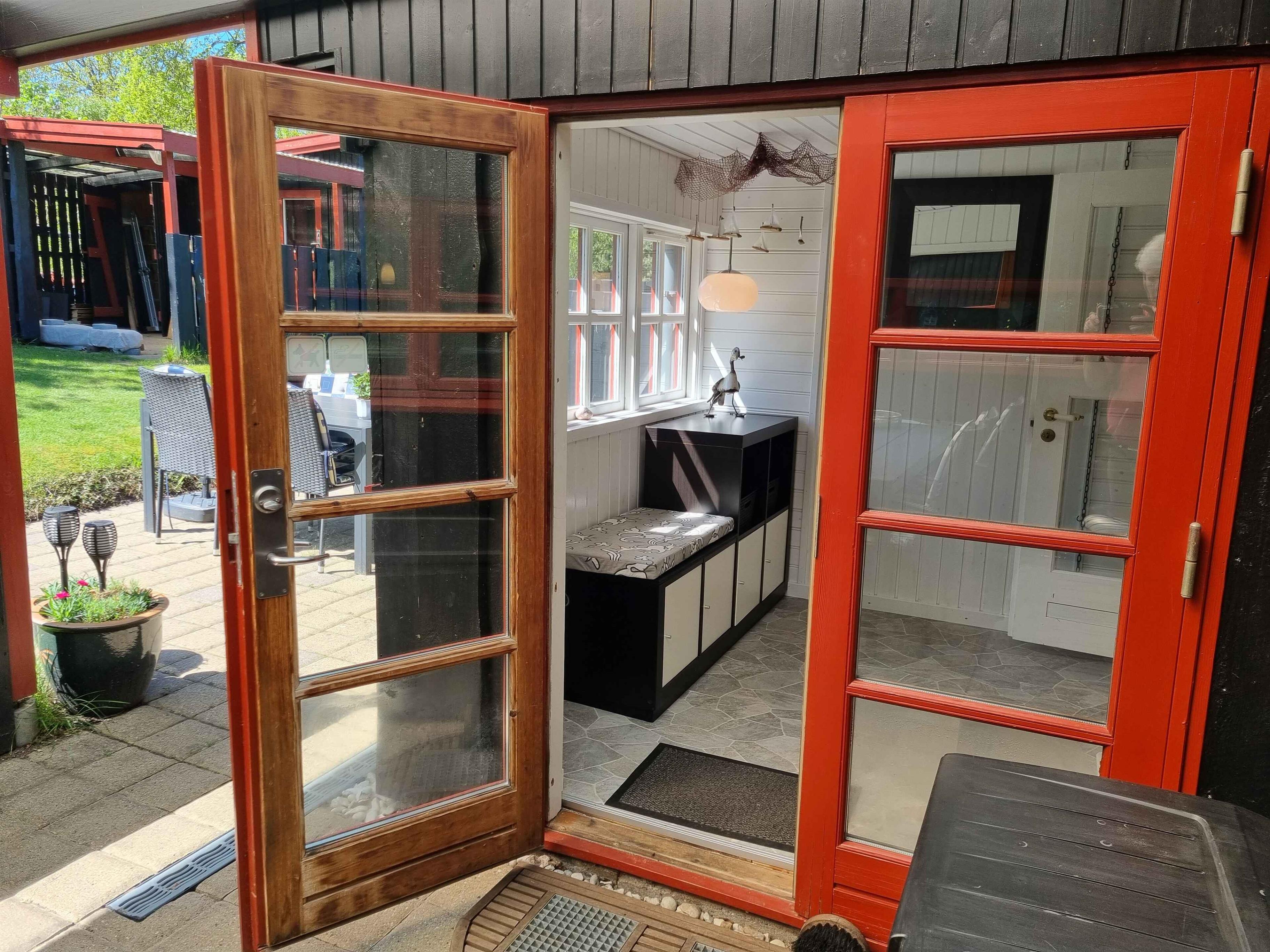 Charmerende sommerhus fra 1940'erne nær Høve strand med moderne faciliteter og hyggelige terrasser.