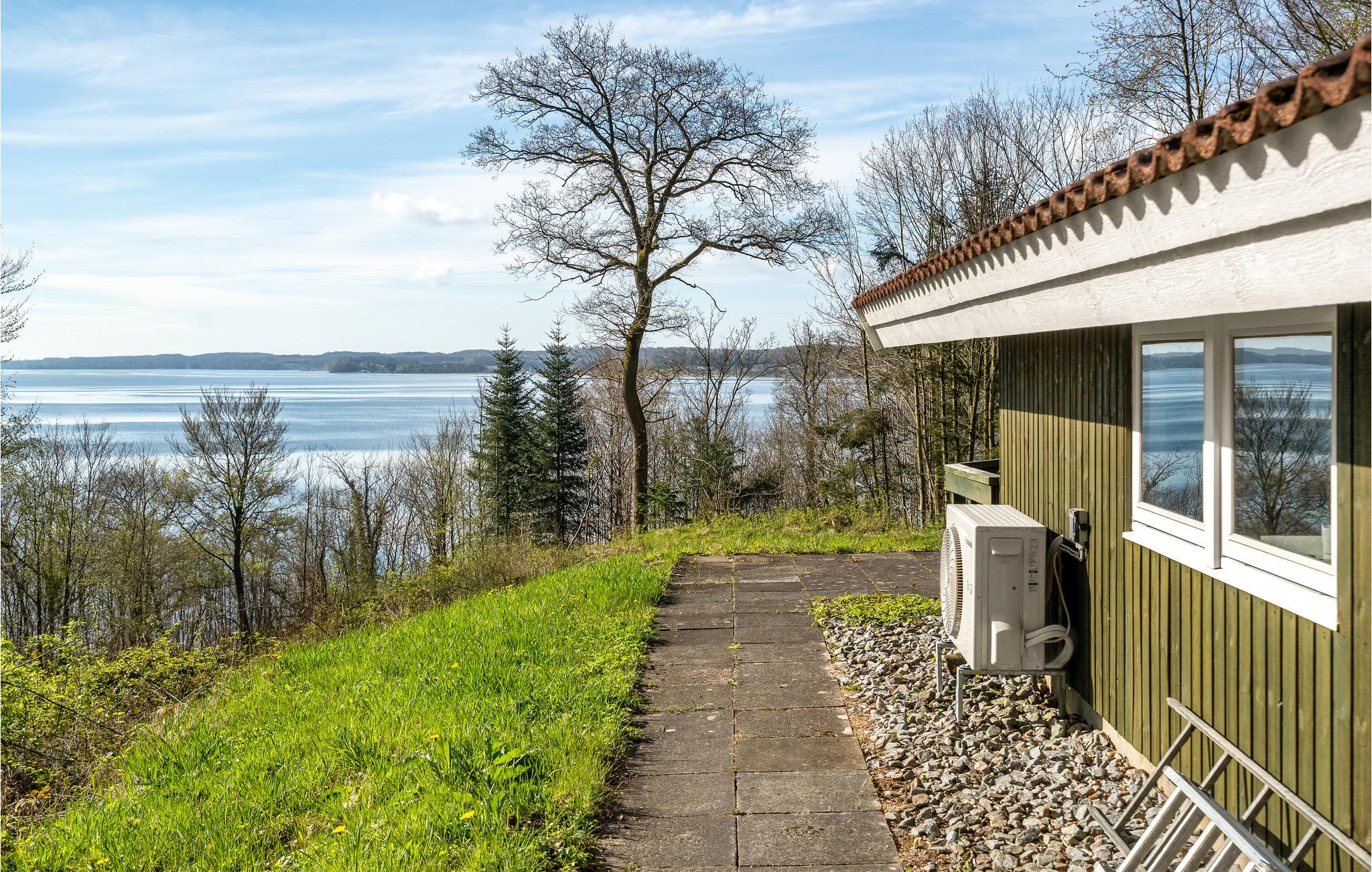 Langt ude i skovens dybe, stille ro ligger dette autentiske feriehus - midt i naturen med flot udsigt over Vejle Fjord. Vejen til huset går de sidste 750 m ad en skovvej, der et par steder er meget stejl, men I kan køre hele vejen op til huset. Huset rummer stue i åben forbindelse med køkken, der er opvaskemaskine og varmepumpe. Soveværelse med dobbeltseng, et lille værelse med køjeseng (sengene er 70 x 190 cm). Enkelt indrettet badeværelse. Perfekt til den naturglade - vandreture, cykelture eller trekking familie - her er muligheder for det hele. Eller hvis I bare trænger til at nyde stilheden i naturen, vågne til fuglesang og måske træffe vildtet helt tæt på. Nyd det hele fra terrassen med fjorden som baggrund. Samtidig er der mange muligheder i det nærmeste opland - tæt ved Juelsminde, Vejle, Legoland, Løveparken Givskud Zoo og flere badestrande.