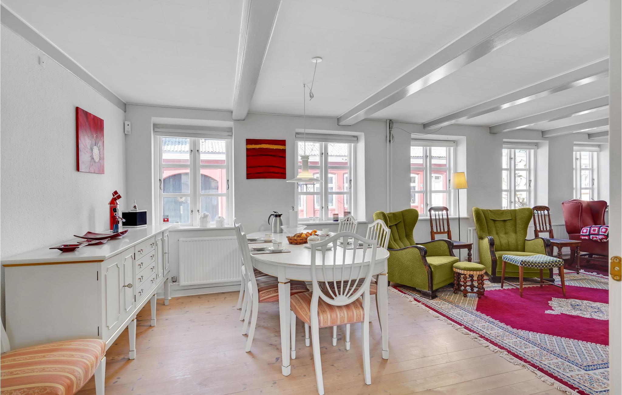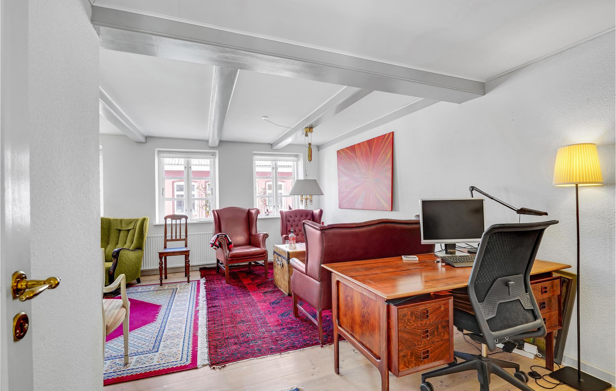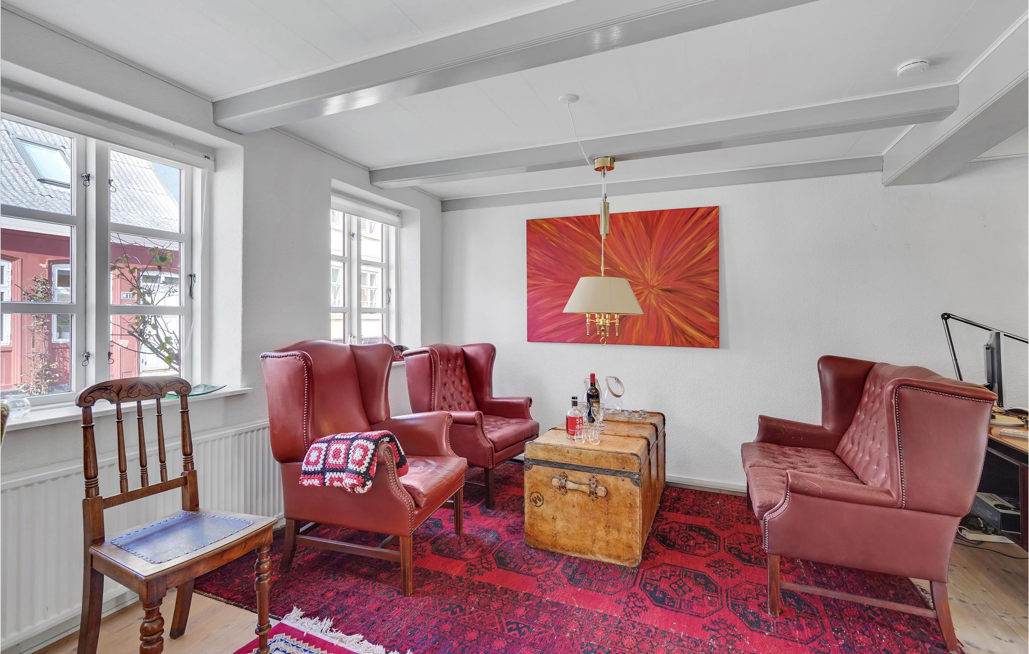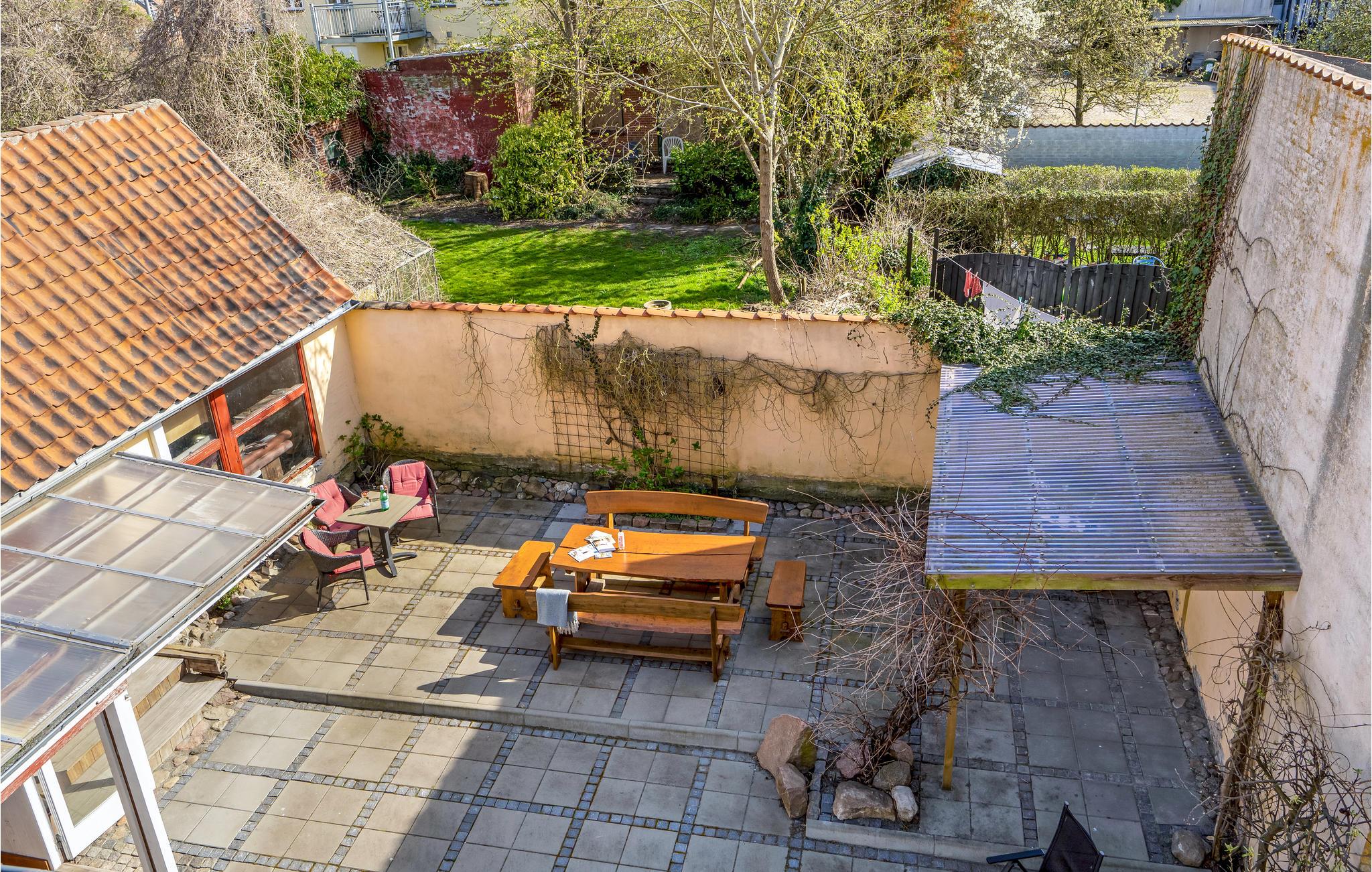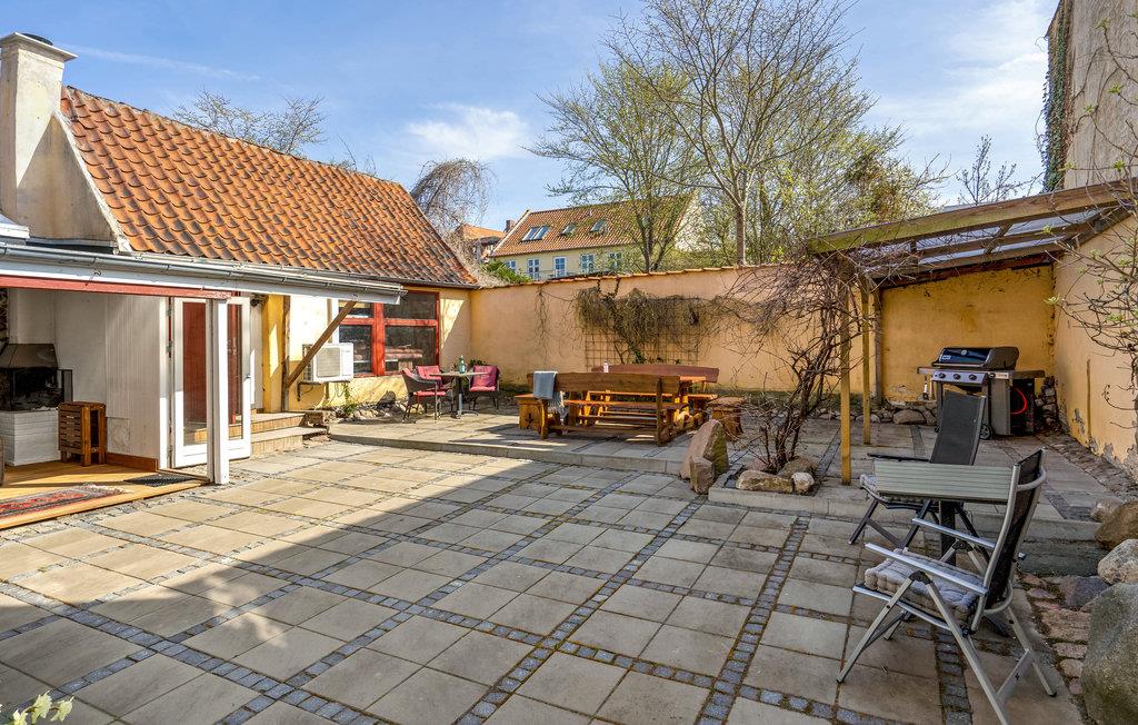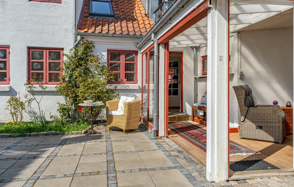 Charmerende byhus i Assens med solrig gårdhave tæt på strand og byliv.