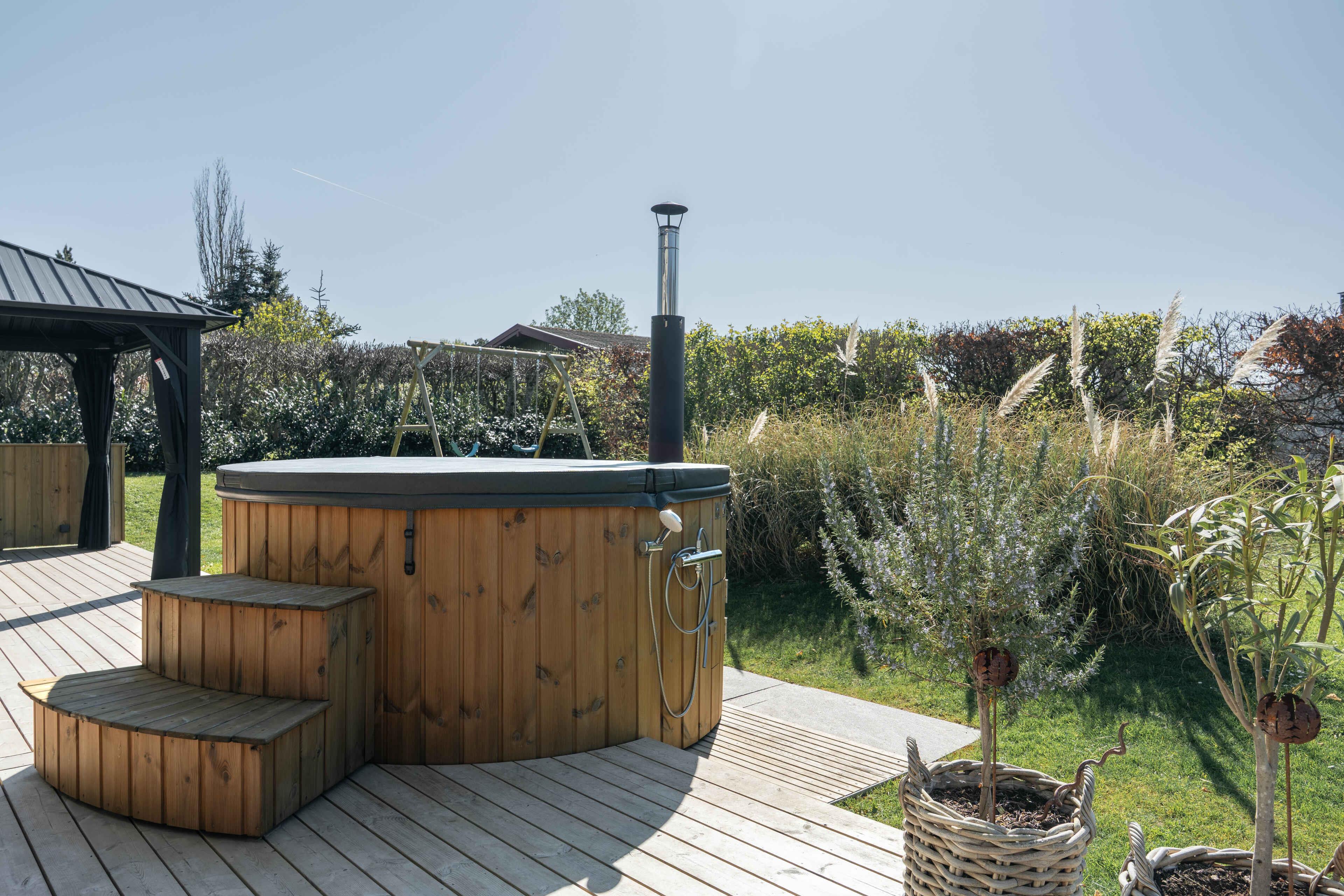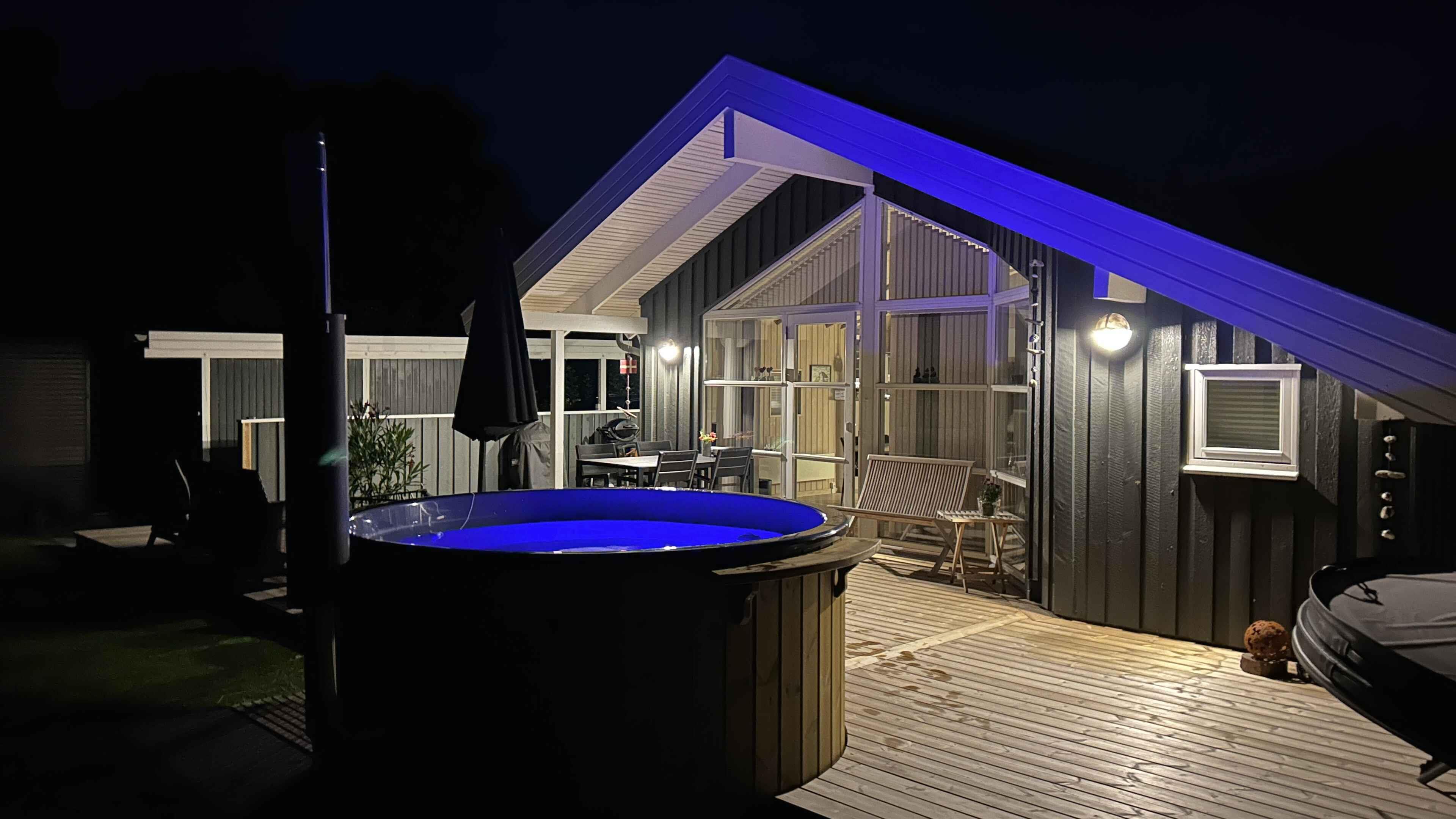 Hyggeligt sommerhus ved Sandager Næs med vildmarksbad, sauna og moderne faciliteter tæt på strand og natur.