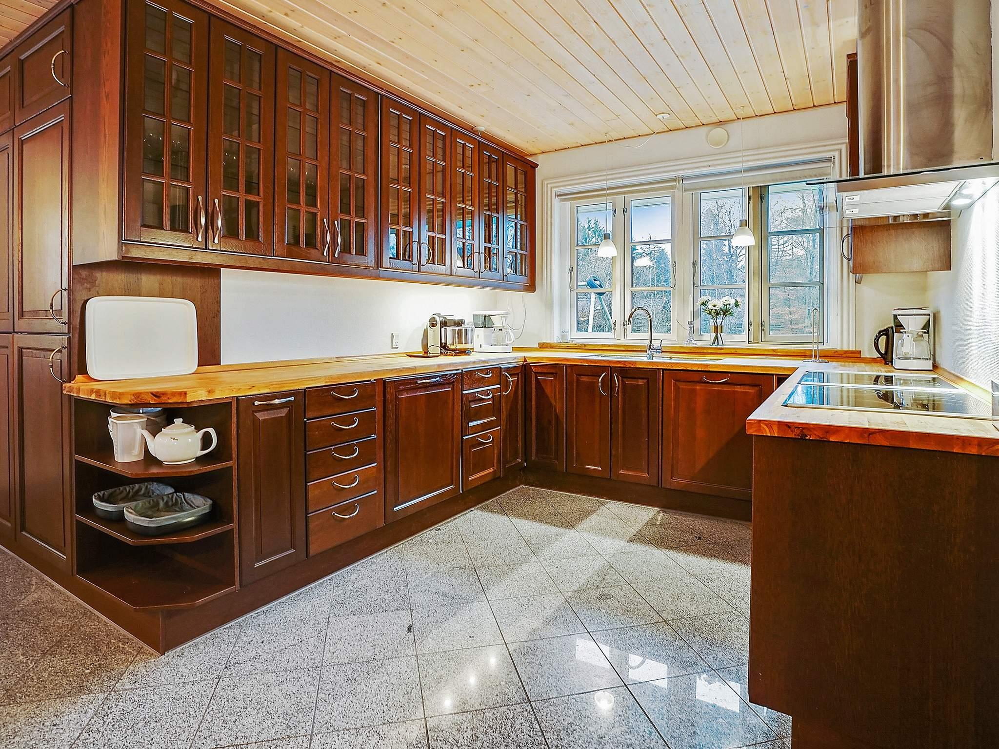 Spise-/opholdsrum er smagfuldt indrettet med stereoanlæg med cd-afspiller, tv, blu-ray-afspiller og høj barnestol. I det gennemtænkte køkken er der stort køleskab, fryseskab samt to opvaskemaskiner og to komfurer, så der er rig mulighed for at kokkerere.
