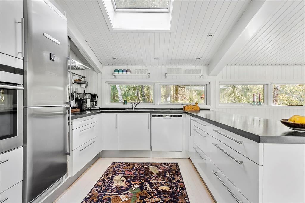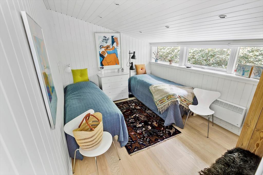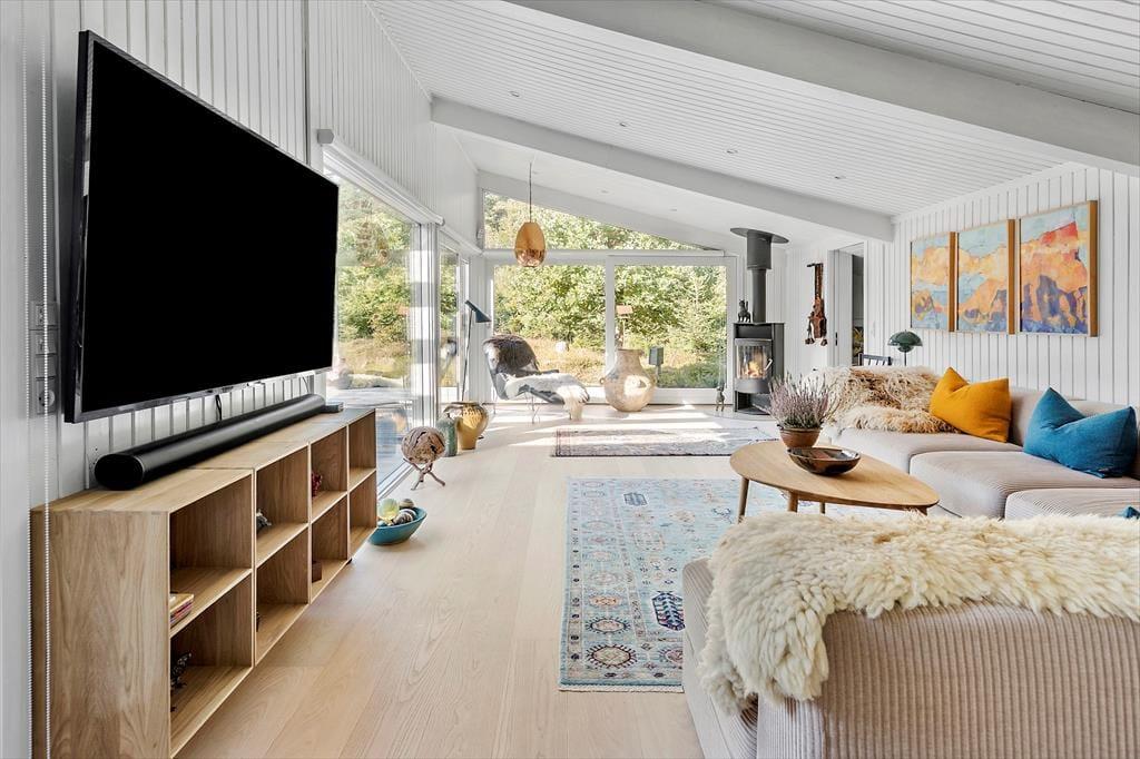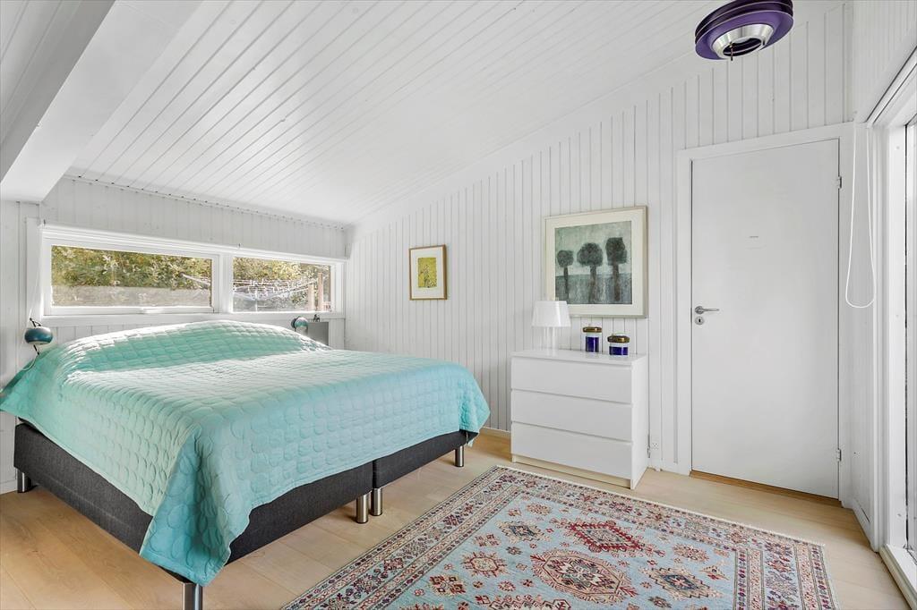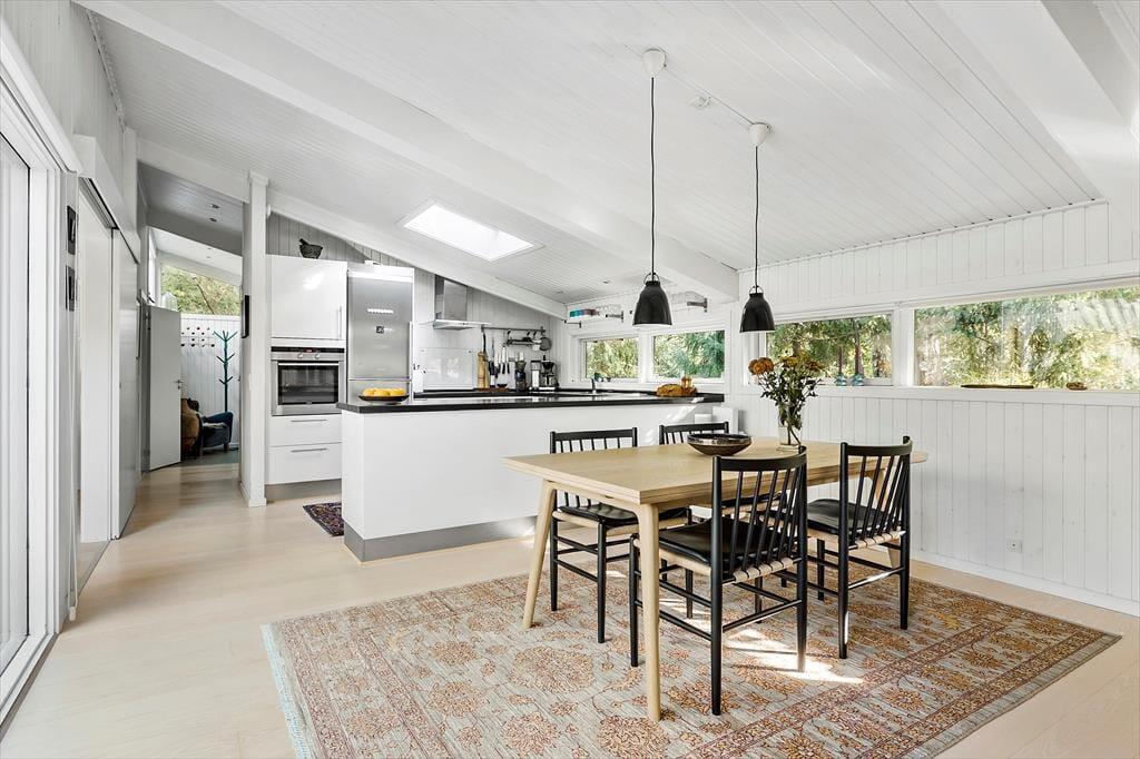 Dette hyggelige og lyse sommerhus i Asserbo Plantage indbyder til afslapning og nærvær. Her er hver detalje nøje udvalgt for at sikre en dejlig ferieoplevelse. Stuen med store vinduespartier åbner op for en skøn udsigt til den omkringliggende natur, mens pejsen skaber varme og stemning på kølige aftener. Køkkenet ligger i åben forbindelse med stuen og spisestuen, hvilket gør det nemt at kokkerere og samtidig være en del af samtalerne. Når dagen går på hæld, kan du trække dig tilbage til de behagelige soveværelser, hvor en god nats søvn venter.