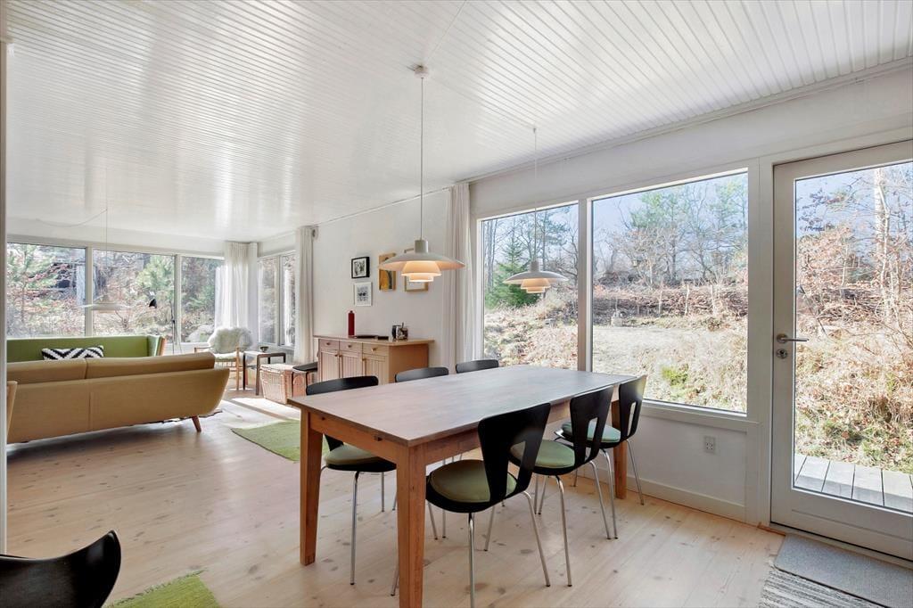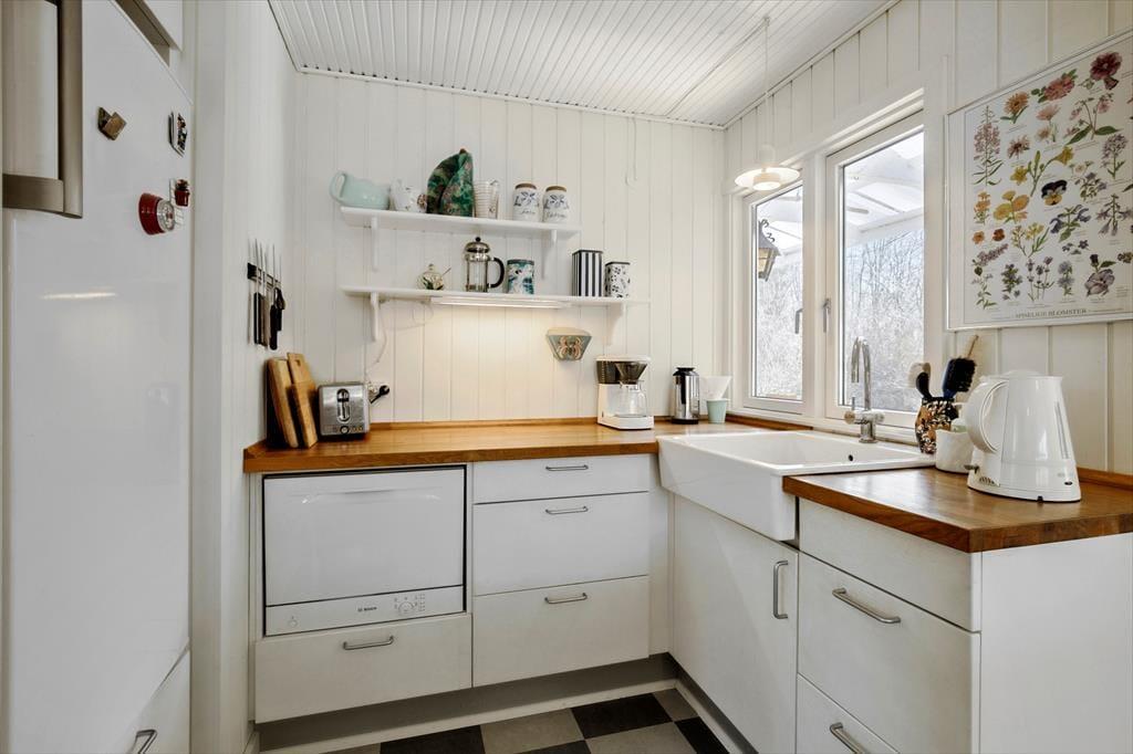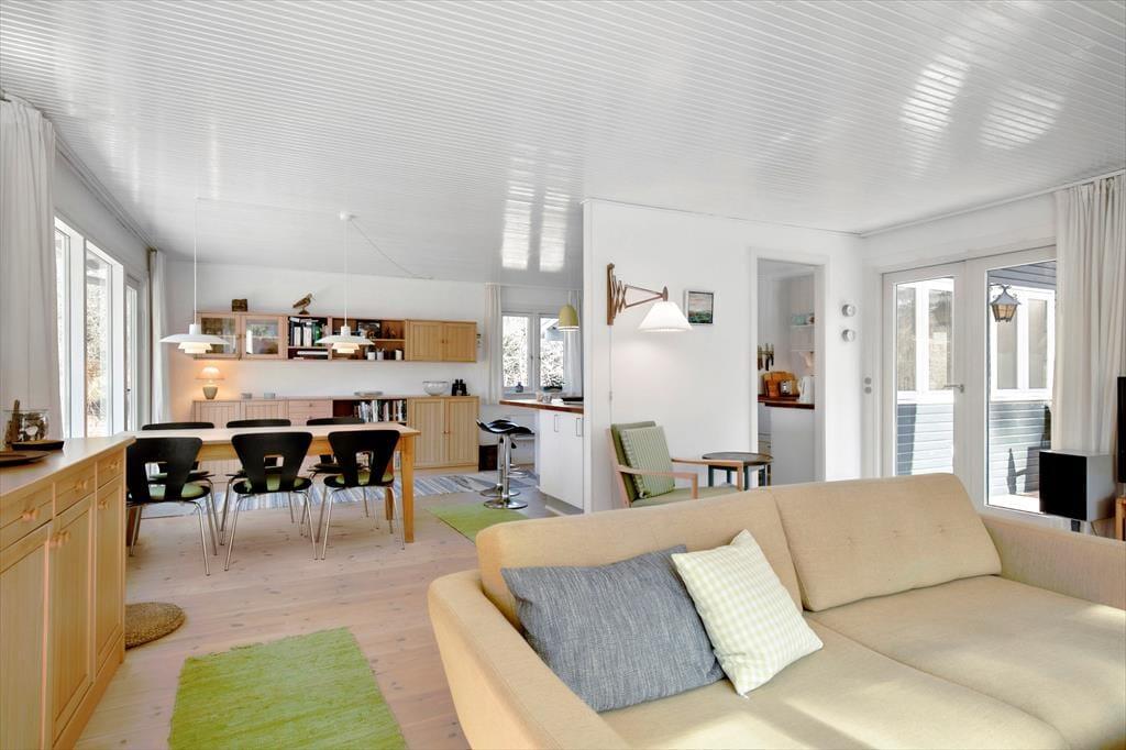 Åbn døren og træd ind i et sommerhus, hvor tiden går lidt langsommere, og feriefølelsen straks breder sig. Her er luften let og afslappet, og sollyset danser gennem vinduerne, mens en mild duft af træ byder dig velkommen. Køkkenet og spiseområdet smelter sammen og skaber en hyggelig ramme for lange morgenmadsstunder med friskbrygget kaffe og lune rundstykker.