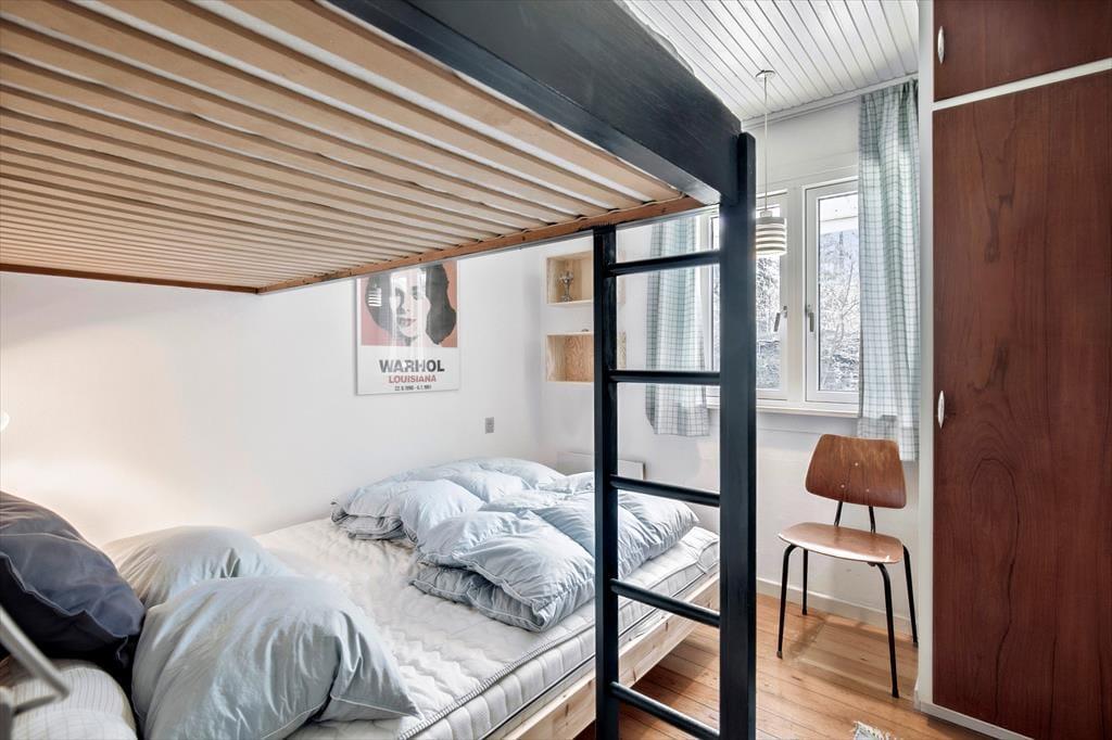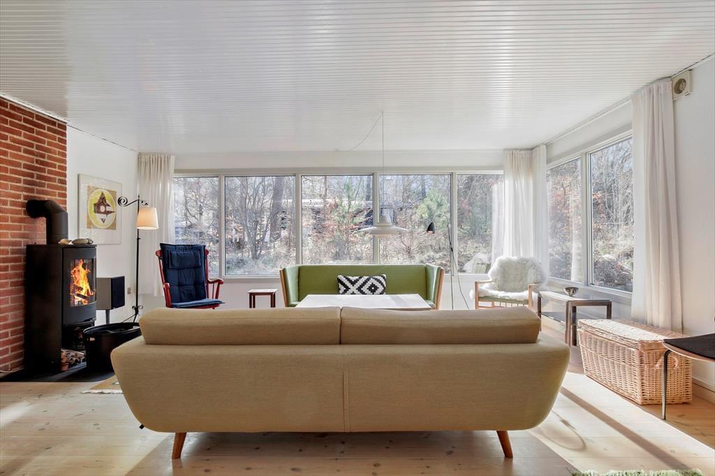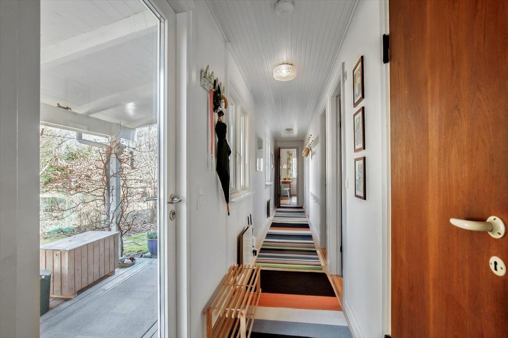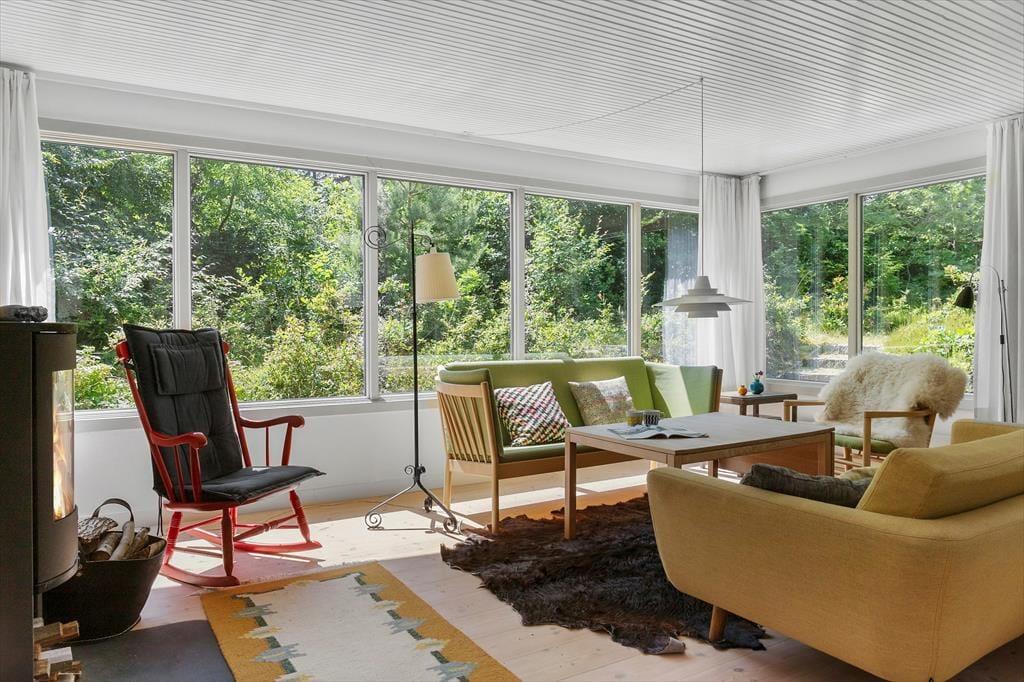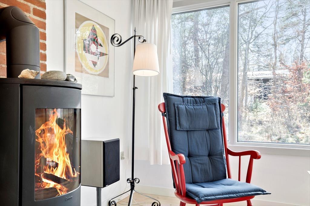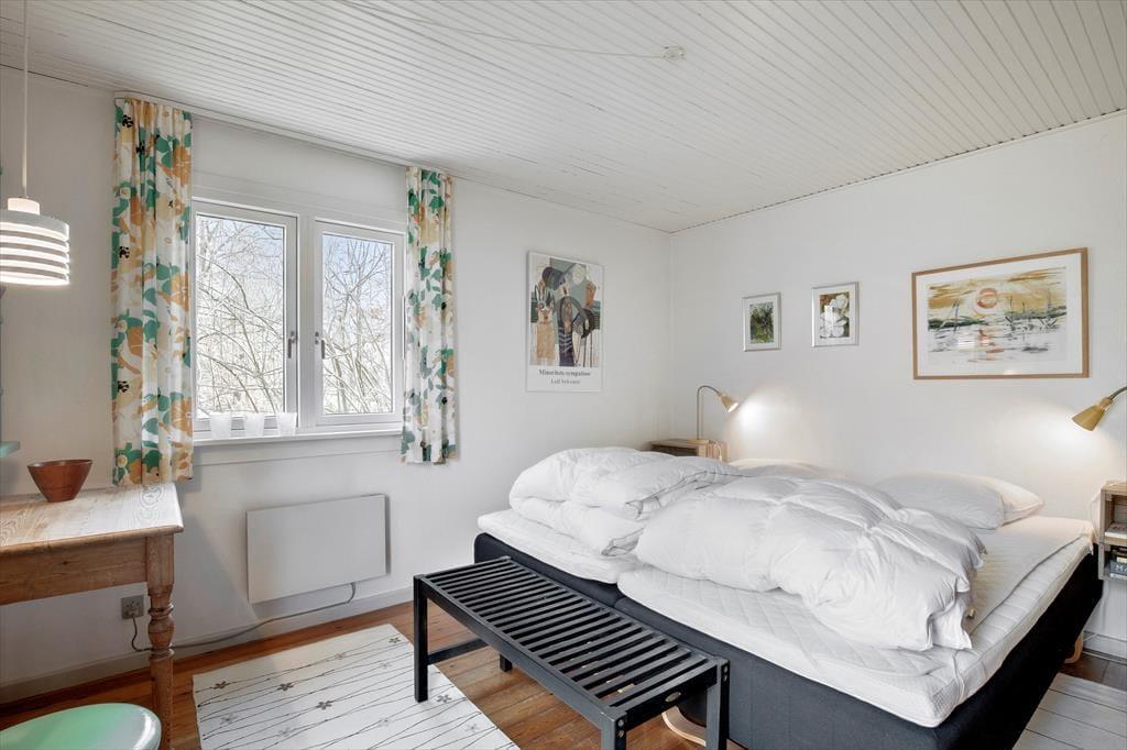I den rummelige stue kan du synke ned i en blød sofa, mens brændeovnen knitrer sagte og spreder en behagelig varme. Måske har du en bog ved hånden, eller måske nyder du blot at lade blikket glide ud over haven gennem de store vinduer. Når aftenen falder på, venter tre charmerende soveværelser, hvor du kan lade dig synke ned i de bløde dyner og lytte til vinden, der rasler i trætoppene udenfor. Badeværelset står klar til en forfriskende bruser efter en lang dag under åben himmel.