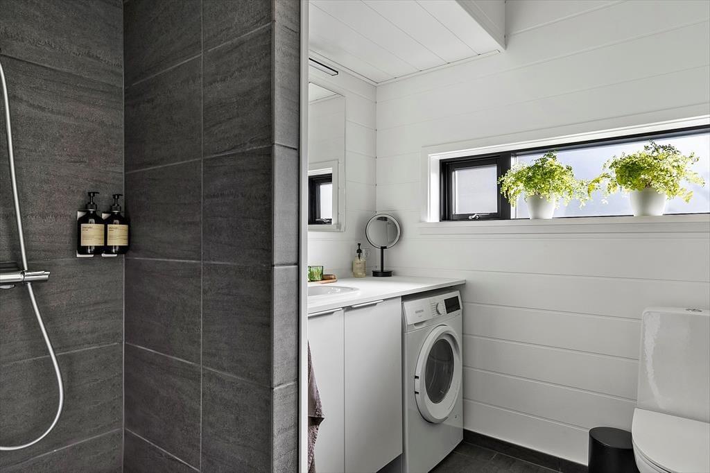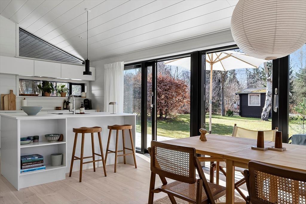 Det åbne køkken og stueområde skaber en naturlig samlingsplads for hyggelige middage, brætspil eller bare afslappet samvær med udsigt til haven. Indretningen balancerer perfekt mellem nordisk enkelthed og personlig varme, og de gode detaljer går igen i hele huset. Her kan man virkelig mærke, at der er skabt et sted til ferie – med ro, komfort og nærvær i fokus.