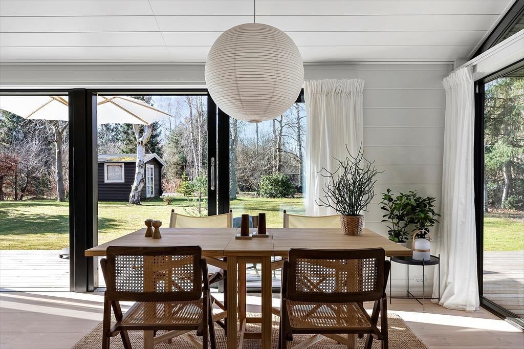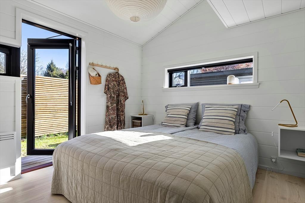 Haven er omkranset af grønne beplantninger, som skaber læ og privatliv, og det milde sommerlys filtreres smukt gennem trækronerne. Uanset om du vil slappe af i en loungestol eller være aktiv udendørs, har huset den ideelle ramme til at nyde det gode danske sommervejr i fulde drag.