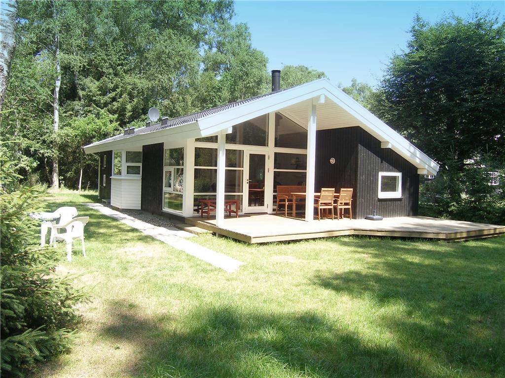 Udenfor kan du nyde sommeren på en stor, overdækket terrasse, hvor grill og havemøbler står klar til lange sommeraftener i godt selskab. Den frodige have med græsplæne giver masser af plads til leg og familiehygge, og de omkringliggende buske og træer skaber en privat og idyllisk ramme om dit ophold.