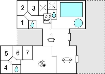 Spændende og flot sommerhus hvor der er lagt vægt på god indretning ned i de helt små små detaljer. Huset er som skabt til familieferie, hvor børnene bl.a. kan bruge energien i den store poolafdeling. Her finder I også det store spabad samt den velgørende sauna. Aktivitetsrummet lægger op til en familiedyst i bordtennis og billard, og i den lille bar med køleskab, kan de foretrukne drinks mikses. Den store hems er rigtig hyggelig, og vil helt sikkert være et hit hos børnene. Køkkenet er meget veludstyret og dimensioneret til husets størrelse med bl.a. to komfurer, to opvaskemaskiner samt god plads i køleskab og fryser. Køkkenet ligger i åben forbindelse med stuen, så alle kan være sammen og følge med i hinandens gøremål. Huset ligger i et dejligt og naturskønt område med kort køreafstand til den gode badestrand. Beliggenheden er også perfekt til vandreture i den smukke natur. Aconto forbrug og slutrengøring betales kontant i huset sammen med de øvrige forbrugsomkostninger. Sengelinned, håndklæder, barneseng og stol kan lejes på det lokale kontor.