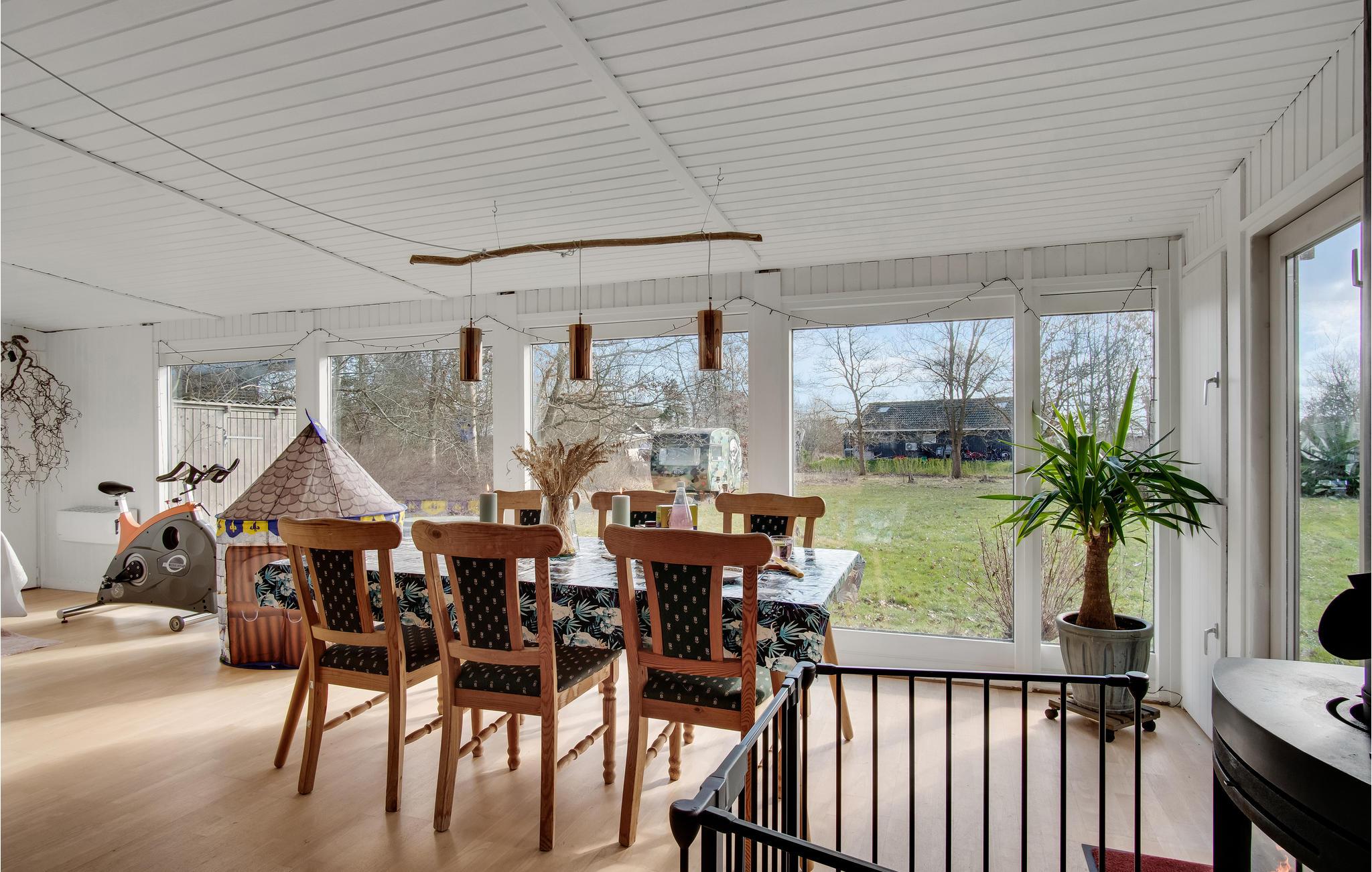 I kan slappe af med hele familien i husets lyse rum. Den hyggelige indretning sikrer en behagelig atmosfære, og vinduespartierne slipper masser af dagslys ind i huset. Nyd måltiderne sammen ved det lange spisebord med en vidunderlig udsigt over haven. Senere kan I føle jer godt tilpas i sofaen, efter en vidunderlig dag på stranden eller på udflugter, kan I tænde op i brændeovnen om aftenen og arrangere en selskabelig film- eller spilleaften. Feriehusets udendørsområde indbyder til mange glade timer i det fri. Nyd solen på terrassen og slap af, mens jeres børn render rundt på ejendommen eller hopper på trampolinen. Saml hele familien om et bål om aftenen.