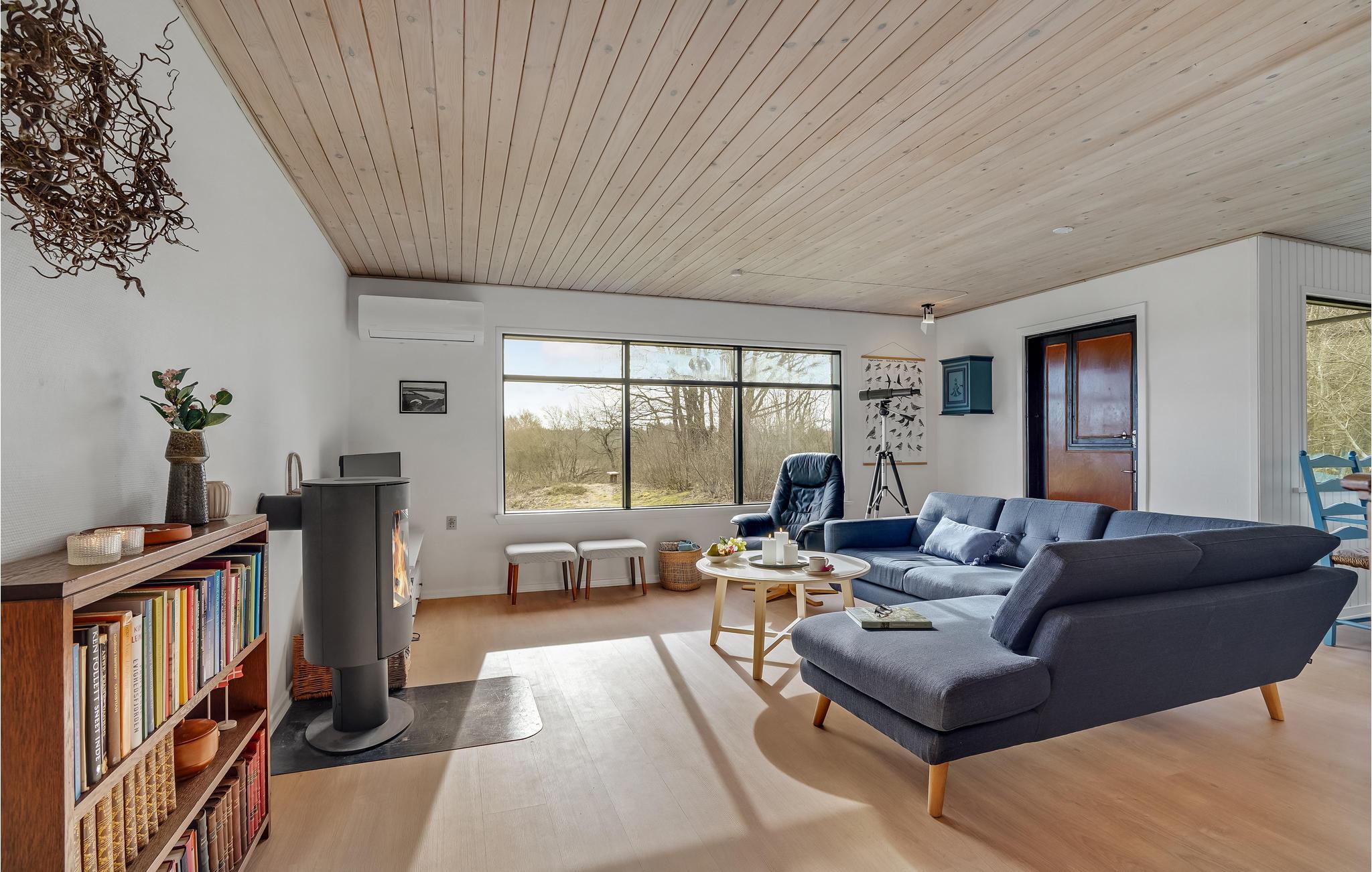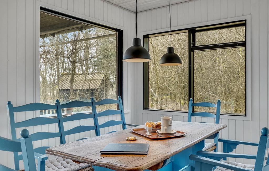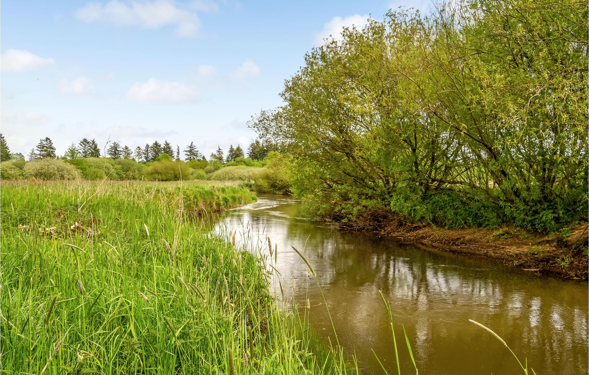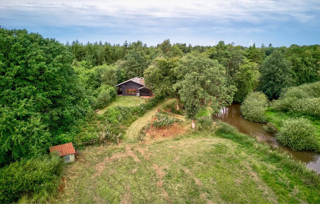 I kommer til at bo ud til en lille skov, hvor Storeåen snor sig smukt lige foran huset. Glæd jer til nogle fredfyldte feriedage, hvor boligens store vinduer giver jer direkte kig ud i de grønne omgivelser. Indretningen er harmonisk og moderne, så her har I gode rammer til at slappe af.